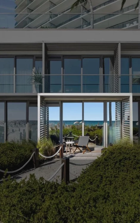 Cabana # 4 is a private, ground-level beachfront retreat with the purchase of Residence 401 at Armani Casa Residences. Ideally positioned just steps from the sand, this fully finished cabana offers a seamless indoor-outdoor lifestyle with direct access to the beach path, enhanced landscaping for privacy, and a tranquil furnished lounge terrace perfect for sunbathing or relaxing after a swim. The interior features a warm modern design with custom built-ins, a full bathroom, and a flexible living space ideal for day use, storage of beach essentials, or a serene work-from-paradise hideaway. A rare and highly desirable amenity—few units in the building include a private oceanfront cabana. This Cabana also includes residence # 401, offered separately at $4,700,000 (MLS# A11905555).