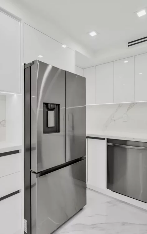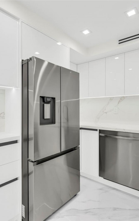 New custom-designed kitchen with premium cabinetry, sleek countertops, and high-end appliances. Completely