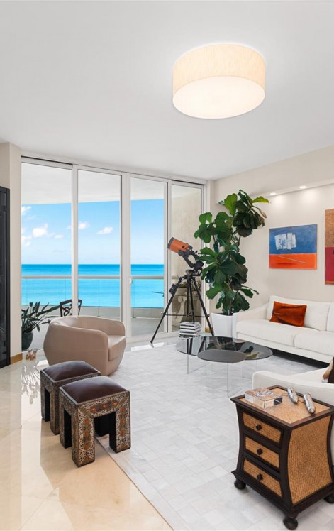 Embrace this opportunity to live in a rarely available corner flow-through residence in the exclusive Turnberry Ocean Colony, the most prestigious oceanfront five-star resort community in the heart of Sunny Isles Beach. This highly sought-after, northeast corner residence offers breathtaking panoramic views of both the Atlantic Ocean and the Intracoastal Waterway, delivering unforgettable sunrises and sunsets from every angle. A private elevator opens directly into your home, revealing an expansive living and dining area with unobstructed ocean views, marble floors, electric blinds, and a custom built-in wine cabinet—perfect for elegant entertaining. The residence features a stunning gourmet kitchen, 3 very spacious bedrooms and 4.5 bathrooms, 2 of which have custom murphy beds for great versatility. The luxurious primary suite includes 2 private bathrooms with a connecting steam shower and an oversized custom walk-in closet. Enjoy seamless indoor-outdoor living with generous ocean front terrace ideal for relaxing or dining al fresco. Turnberry Ocean Colony offers world-class service, exceptional privacy and security, and resort-style amenities including an oceanfront spa, two restaurants with room service, two heated pools, a full-service salon, and more. This is luxury world class living at its finest. A pleasure to show.