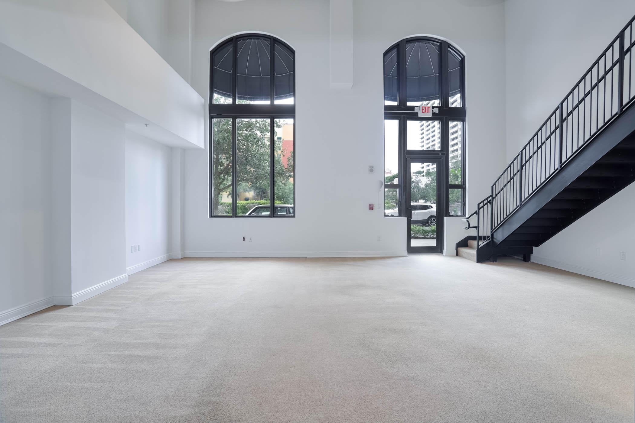 Incredible Opportunity for High Profile Commercial Space located in the Luxury Corridor of Downtown West Palm Beach! Corner Commercial WORK/LIVE Unit at Two City Plaza Luxury Condos offers Direct North Frontage on Trinity St. Soaring 22' Ceiling Height with Porcelain Flooring and Open Floor Plan offers endless possibilities for your Business or Office! Oak Stairway leads to Second Level featuring Glass Enclosed Private Office with Full Bath and Large Closet. A Light & Bright Fresh Palette awaits your personal touch in the ever thriving Downtown Market.Perfect for Art Gallery, Professional Offices, Convenience Store,Salon,Retail, Pet Store, Sandwich Shop. 100% Walkability, strategically located between 3 Hotels,6 Major Urban Towers, & Luxury Office Towers. Requires notice to show, TENANT.
