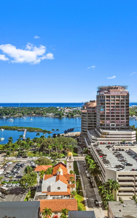 Welcome to this exquisite 2-bedroom, 2.5-bathroom corner residence at Two City Plaza, where luxury meets breathtaking views. This stunning condo offers panoramic vistas of the Intracoastal Waterway, the ocean, Palm Beach Island, and the iconic Breakers Hotel. The spacious, light-filled open floor plan includes two premium garage spaces, a storage unit, and valet parking. Residents enjoy a wealth of exceptional amenities, including a rooftop pool and terrace, a state-of-the-art fitness center, a dog park, and 24-hour concierge services. Ideally located for seamless access to premier dining, cultural hotspots, and lifestyle destinations, this sought-after residence epitomizes refined living. Call to schedule your exclusive tour today.