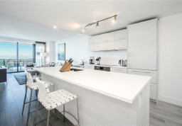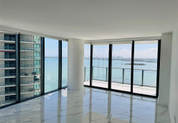 Completed in 2018, Paraiso Bay is a 55-story, waterfront condominium building located in Miami’s Edgewater neighborhood. Paraiso Bay was developed by Related Group and designed by world-renowned architecture firm Arquitectonica while the lobby and other common area spaces were designed by Keith Hobbs of United Design Partnership. Lastly, the landscape design of the building’s pool deck and grounds was done by Enzo Enea. Paraiso Bay has 346 condo residences comprised of one-, two-, three-, and four-bedroom floor plans plus penthouses. The non-penthouse residences range in size from 919 to 2,246 interior square feet (see Paraiso Bay floor plans). The apartments at Paraiso Bay feature private elevator foyers, 9-foot-high ceilings with floor-to-ceiling glass windows (10-foot-high in the penthouse residences), his and her walk-in closets, an in-unit washer and dryer, and wide private balconies with glass railings. Additionally, the condos at Paraiso Bay offer sweeping views of the water and Miami Beach skyline.