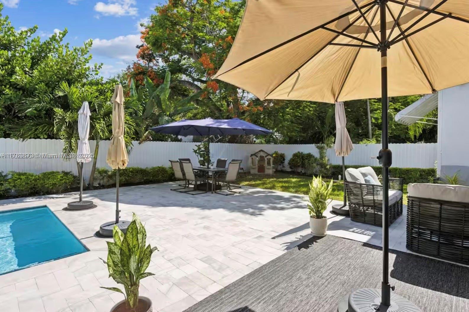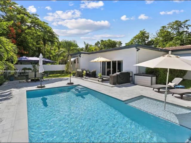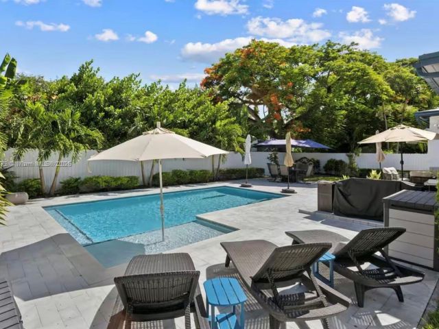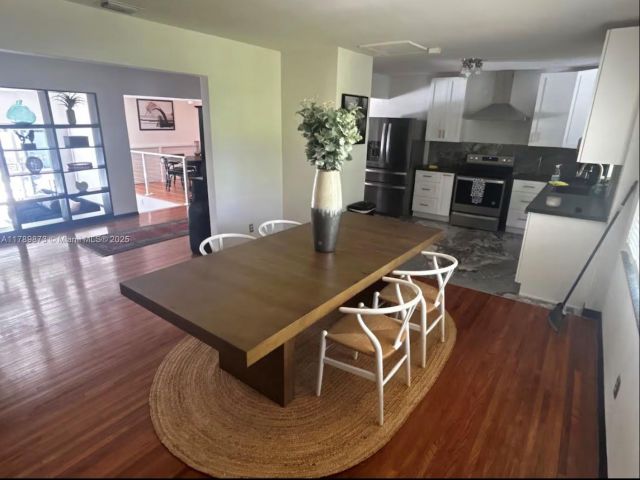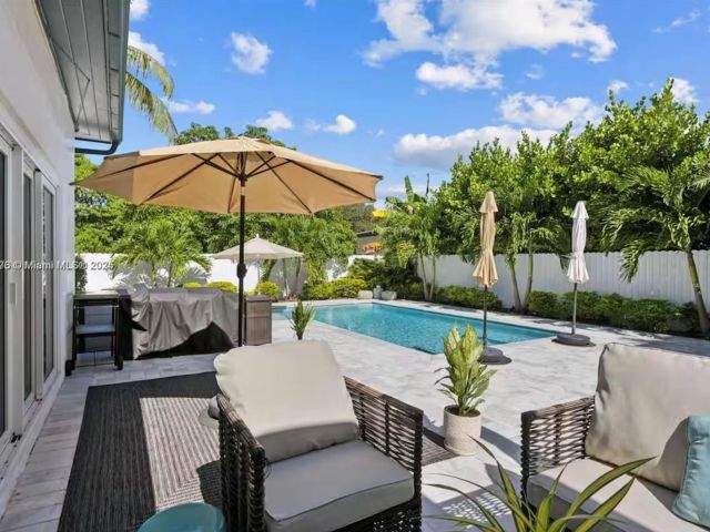 Discover this beautifully updated 3-bedroom, 2-bathroom home. Featuring rich wood floors, vaulted ceilings, and a spacious layout that blends indoor-outdoor living. Step into your private backyard oasis with a brand-new sparkling pool and ample space for relaxing or entertaining. Located just 15 minutes from beaches and 10 minutes from the luxury shops at Bal Harbour. With Whole Foods next door and easy access to highways and airports, everything you need is close by. PRICE VARIES BASED ON THE LEASE TERM DURATION- annually $7500, short term monthly 9k, 6 months 8k
