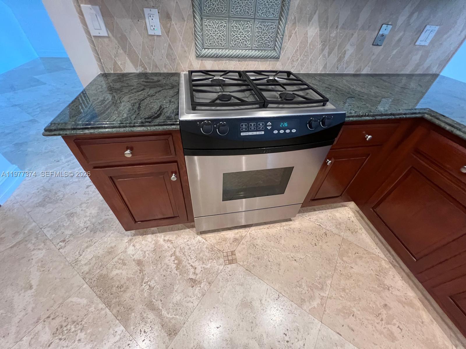 Elegant 4-bedroom residence situated in the community of The Cloisters. This stunning home greets you with grand double entry doors and boasts formal living and dining areas, perfect for both day-to-day living and entertainment. The gourmet kitchen is equipped with stainless steel appliances, marble countertops, and a gas stove, flowing seamlessly into a sunlit breakfast nook and spacious family room. The first floor includes three bedrooms. Upstairs, the primary suite features an en-suite bath, walk-in closet, and a balcony overlooking the patio and serene fountain. Marble and wood flooring throughout enhance the home's timeless charm. Conveniently located, this residence offers a luxurious and comfortable lifestyle in a gated neighborhood.