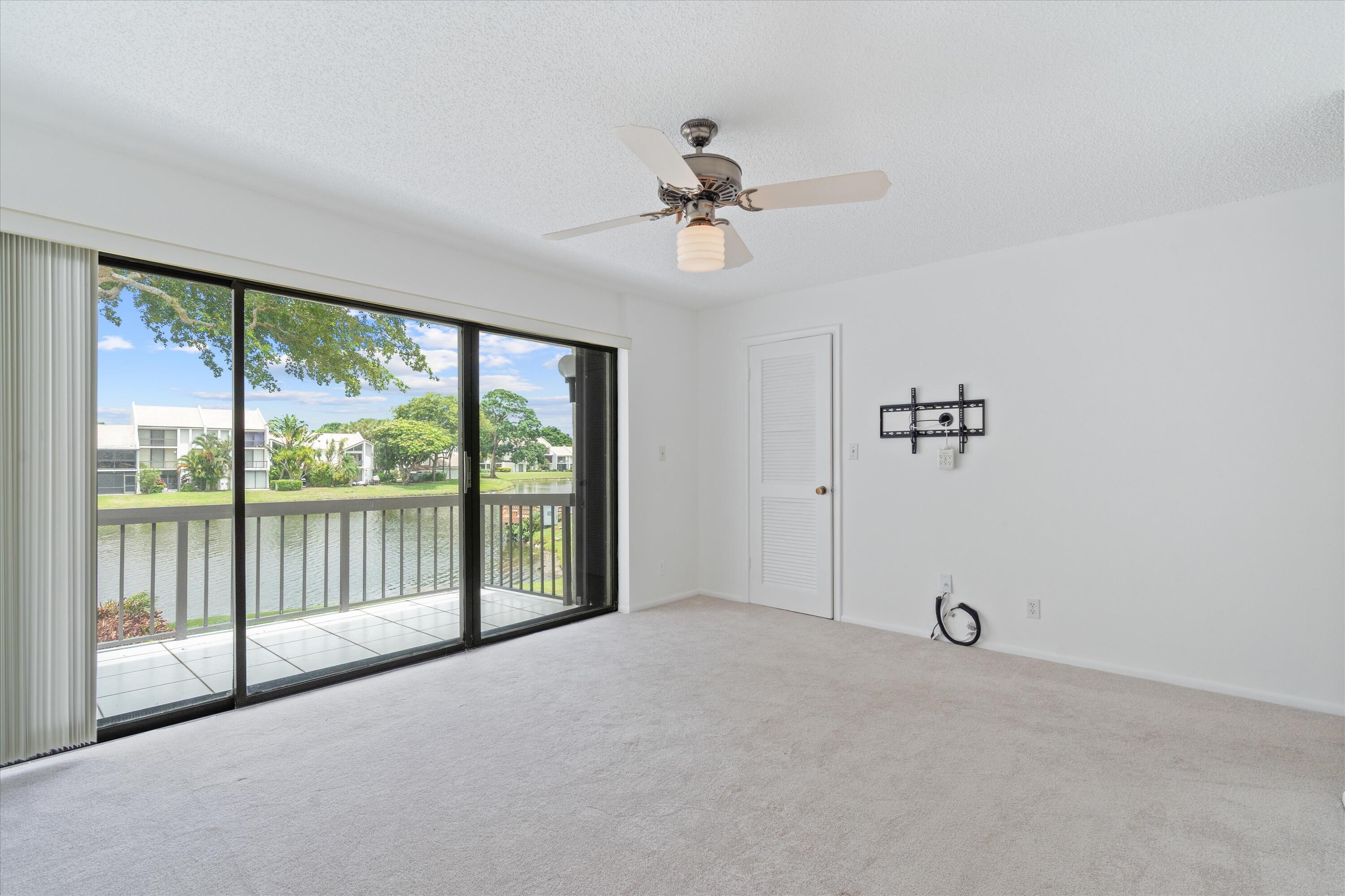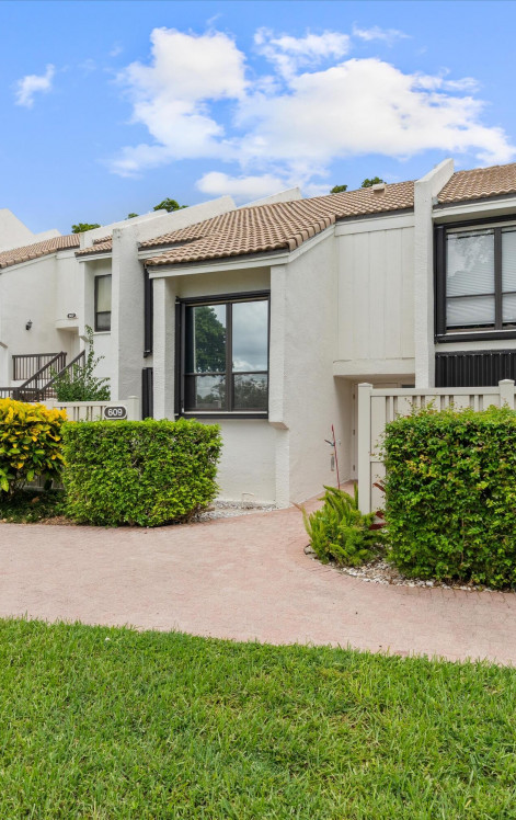 As you enter through the guard gated community of Boca West you will appreciate the beautiful grounds and tropical landscaping throughout the community. This 2 level unfurnished townhome features tranquil lake views from the large glass enclosed Florida Room and the upstairs primary bedroom. The generously sized primary bedroom also features 2 walk-in closets, an ensuite bath and a private balcony overlooking the lake. The 2nd upstairs bedroom has a walk-in closet and a private hallway bath. The entire second floor features new carpet and window treatments giving the space a cozy plush feel. Downstairs you will find a half bath for guest, an open and inviting living & dining area, a private front patio just off the kitchen and a back patio with lake views. New stainless steel appliances!