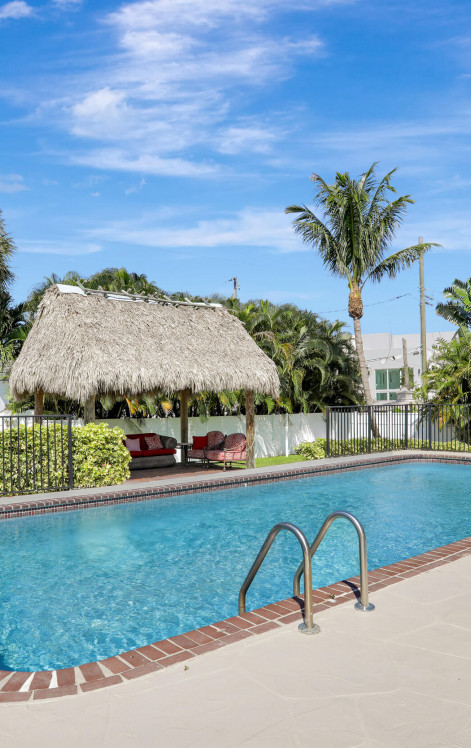 Gorgeous single family pool home at Golden Triangle @ East Boca Raton! Beautiful 3 bedroom, 2 bath, totally updated, newer kitchen and bathrooms, tile floor throughout, wine cooler, abundance of natural light, smart fridge, LED mirrors in bathrooms, large eat-in kitchen area, California closets in all rooms. Ideal summer backyard, perfect for entertainment and outdoor activities! 1.5 car garage, Tiki hut, fire pit, sunshade canopy & more! LAWN AND POOL MAINTENANCE INCLUDED with the rent. Excellent location one block from Lake Wyman Park w/ tennis courts & kids playground, A-rated schools, walk or bike to the beach, close to shopping, Downtown Mizner Park, Royal Palm Place and the best Boca Raton has to offer! 2 miles to I-95, Annual Lease Only. NO HOA. Call today for more information!