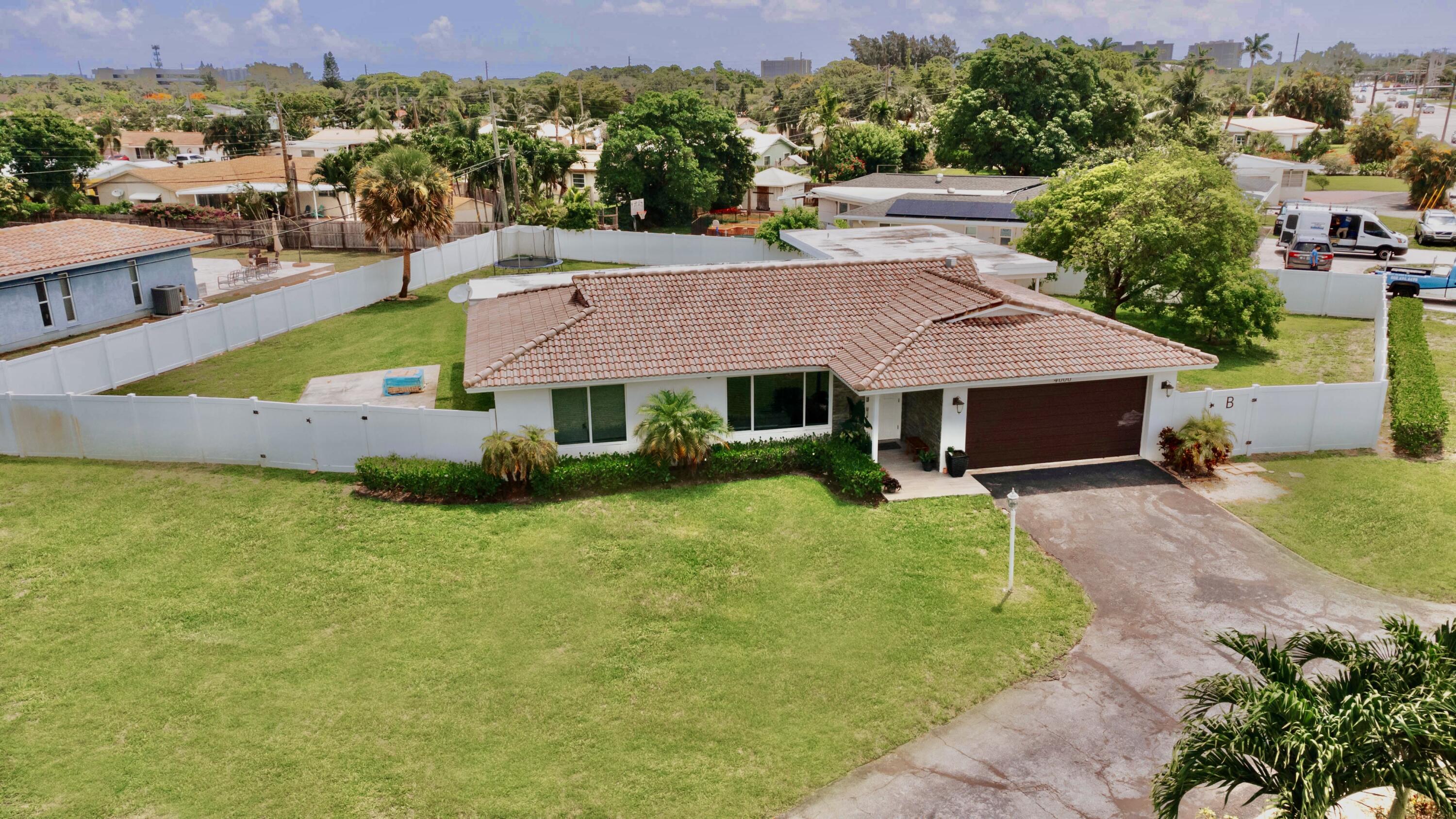 Welcome to this stunning single-family home in the heart of East Boca Raton, located just 1 mile from the beach (dog-friendly access!) and only 5 minutes from I-95. Walking distance to two synagogues. Set on a rare half-acre corner lot, this property combines modern living with unbeatable convenience. Inside, you'll find a completely remodeled and freshly painted interior with a flexible layout to fit your lifestyle. The home features 4 bedrooms and 2 full bathrooms, including: A remodeled kitchen with quartz countertops, stainless steel appliances, and custom cabinetry. A spacious living and dining area with abundant natural light. Full-size washer & dryer for your convenience. 2-car garage with plenty of storage. The owner is currently using the property as his private office: one bedro