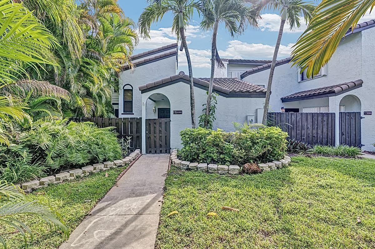 Welcome! This charming 2-bedroom, 2-bathroom townhome offers the ideal layout for privacy and comfort - with one bedroom and bathroom upstairs and the other set downstairs, it's perfect for roommates, guests, or a home office setup.Enjoy two private patios - one at the front entrance and another just off the living room - ideal for relaxing, entertaining, or soaking up the Florida sun. The fully renovated upstairs bathroom adds a modern touch, and both bedrooms are generously sized to ensure everyone has their own space.Located in a well-maintained community featuring a sparkling pool, you'll be just minutes from shopping, dining, beaches, and everything Boca has to offer.Don't miss your chance to own a stylish, versatile home in one of South Florida's most desirable areas!