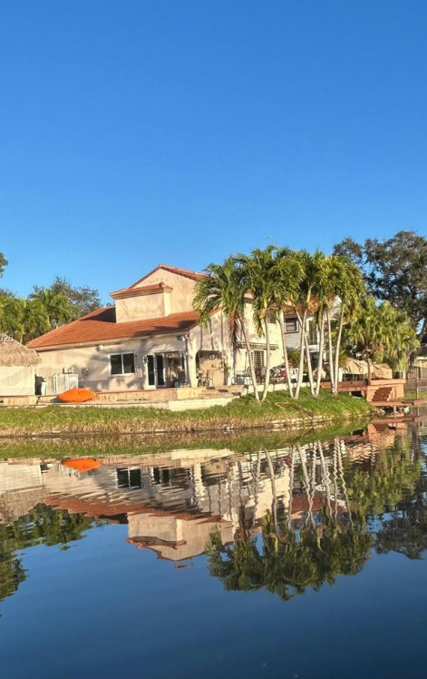 The primary bedroom on the first floor, three bedrooms and two full bathrooms upstairs, plus a half bath for guests. Renovated kitchen with marble countertops, laundry room, tile and wood floors, impact windows, and freshly painted. Available June 2026. A rare opportunity to rent a lakefront home in one of Cooper City’s best communities.