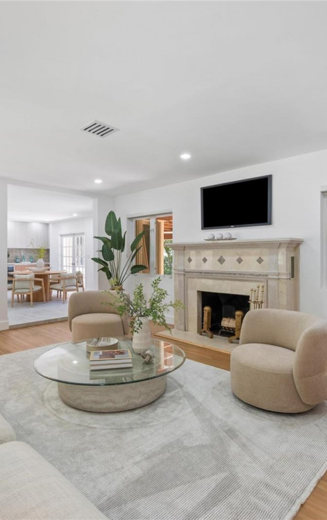 Located on one of the most desirable streets, this beautifully maintained home offers 2,415 square feet of comfortable living space on an expansive 11,382 sq. ft. lot. The property features four generously sized bedrooms and three full bathrooms, including a spacious primary suite with a private en-suite bath and ample closet space in every room. The inviting living room boasts a charming wood-burning fireplace, while rich wood and porcelain flooring flow seamlessly throughout the home. A bright and open-concept kitchen connects to the formal dining area and a cozy breakfast nook, all overlooking a large, wood-beam covered terrace—perfect for outdoor dining and entertaining. The terrace includes a built-in barbecue and opens to a lush, grassy backyard with plenty of room for a pool.