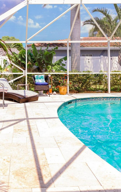 Unfurnished option available - Spacious 3-bed, 3-bath home just minutes from the beach! This home features an independent master suite complete with its own separate/private entrance for added privacy and functionality, while seamlessly blending into the main home; this home offers a modern kitchen, impact windows, and a bright, open layout. Enjoy the screened-in pool, generous yard space, and plenty of parking with a circular driveway and carport. Available furnished or unfurnished. Flexible leasing options available—choose from a yearly lease, a 6-month term, or even month-to-month.