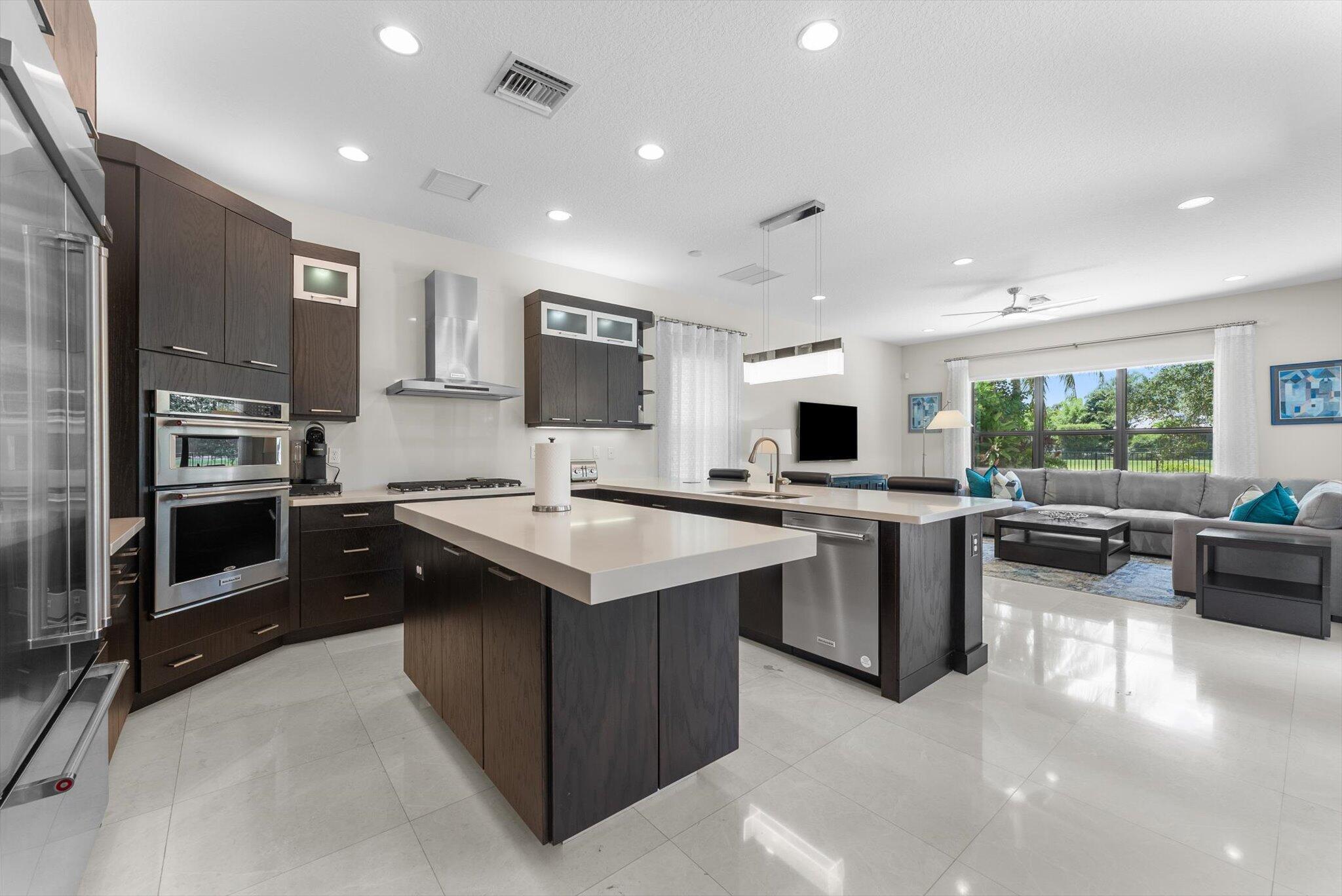 Experience the ultimate in luxury living with this fully furnished 4 BR, 4 BA pool home in the exclusive gated community of Seven Bridges. Designed for comfort and style, this home offers expansive living spaces with soaring ceilings and an open, airy layout. A formal dining room and wet bar create the perfect setting for entertaining, while the chef's kitchen is equipped with premium stainless steel appliances, double ovens, and a casual dining area ideal for everyday living. The oversized primary suite provides features two walk-in closets and a spa-inspired bathroom. Step outside to a private, fenced backyard with a sparkling pool and beautiful lake views. The home also includes a 2-car garage and is ideally located near the Turnpike, Delray Marketplace, shopping, and dining.