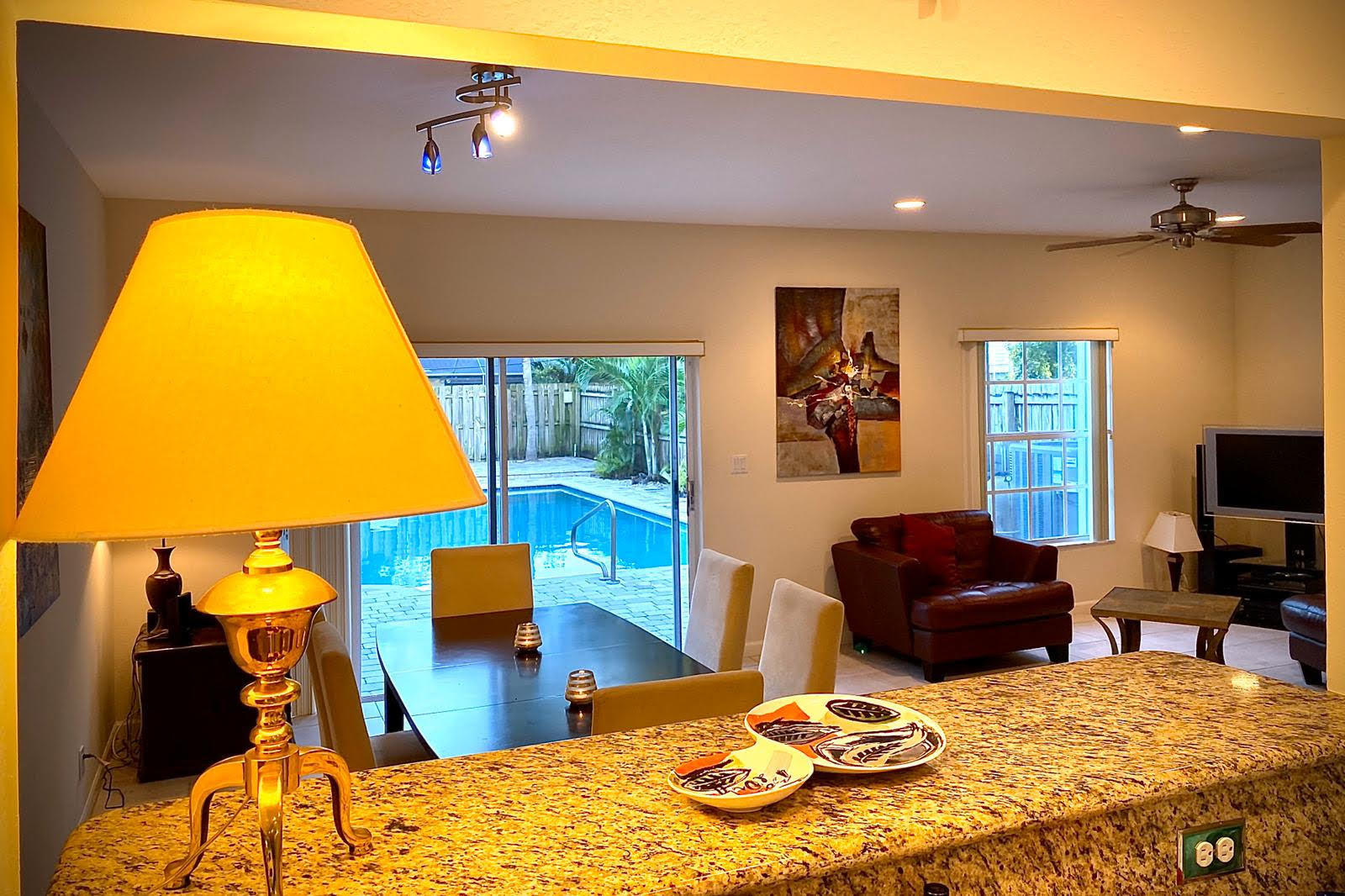 Prime Furnished Rental. Large Private Pool! Walking distance to Atlantic Ave/Downtown! East of US1 near Palm Trail! Walk/bike to Beach/Atlantic Ave. Well-kept home in prime East Delray location equipped with everything. Spacious fenced-in yard, deck, bbq, patio furniture. Large master with balcony & walk-in closet. Fully equipped kitchen with granite tops, 1st floor has laundry room, tile floors. 2nd has hardwood. 1-car garage plus 2-car driveway plus additional guest parking. Home has 5 beds & multiple leather sofas. Short or long term lease. Pool care included. Off-street guest parking. Includes multiple bicycles, lounge chairs, beach chairs, umbrellas! Quick approvals! Enjoy golf cart taxi with FreeBee Ride. No HOA! Seasonal rate: $7,000/month. Annual/off-season rate: $6,000/month.