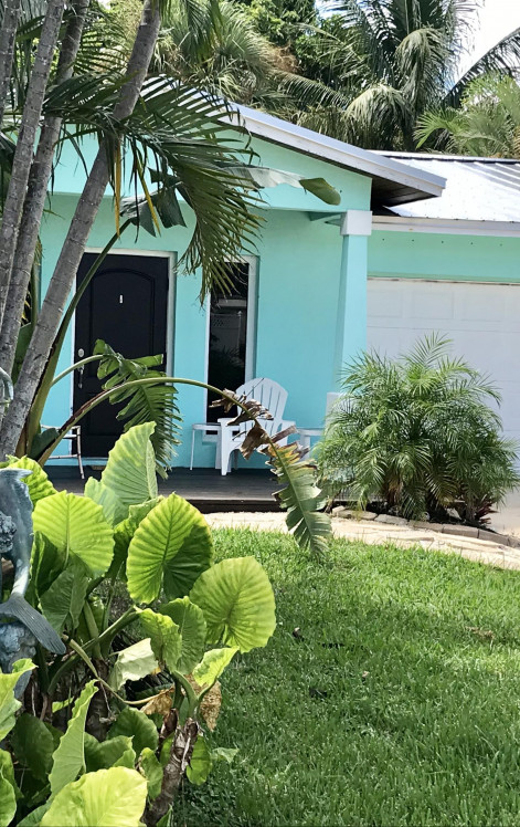 Available Seasonal, Summer, or Annual! New Bathroom install!Just one street from the Intracoastal, this turnkey home offers the perfect mix of tropical style and everyday comfort. An open floor plan creates a welcoming space for entertaining, with a wide, well-appointed kitchen at the center. The master suite exudes a chic island vibe with bamboo wood floors, while the guest room pops with Caribbean blue walls and dark bamboo floors. A third bedroom, bright and airy, doubles as a cozy den with twin beds. The master bath channels the tranquility of a Costa Rican rainforest, while the guest bath reflects timeless Old Florida charm. Step outside to your private backyard oasis--lush tropical landscaping, a spacious deck with resin bar top and grill, and a hot tub for unwinding after a long day