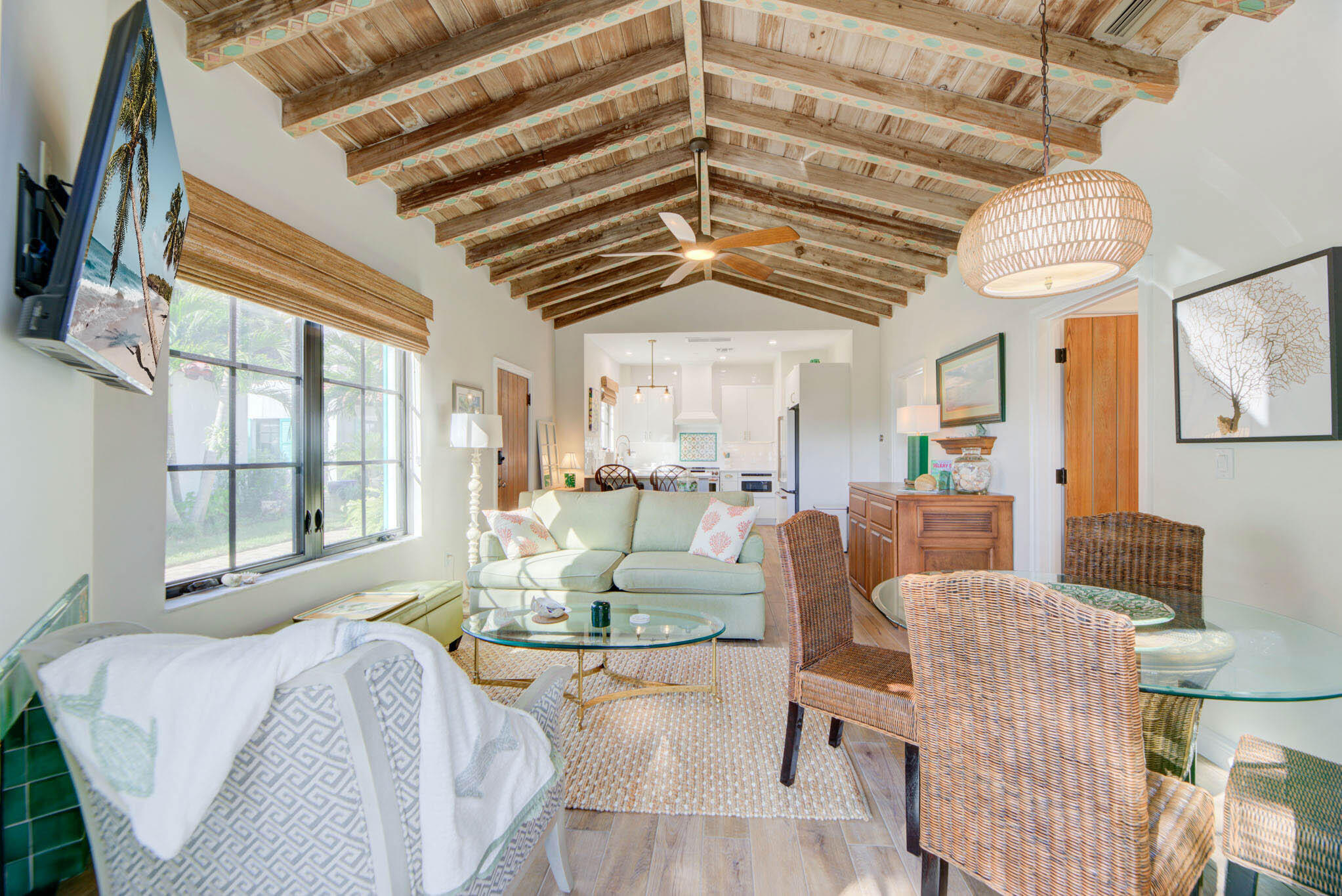 Tucked away in the heart of downtown Delray Beach's Historic Marina District, yet quietly removed from the bustle, lies Marine Way Villas--a charming enclave of beautifully restored 1938 cottages. Rich in character and filled with natural light, this coastal hideaway is the perfect seasonal retreat or annual rental home. Valencia #3 is a freestanding 2-bedroom, 2-bath villa, offered fully furnished and turn-key ready. Step inside to discover a bright, open floor plan with wood-beamed ceilings, a cozy fireplace, and impact glass windows and doors throughout.The chef-inspired kitchen features quartz countertops, a breakfast bar with under-cabinet lighting, a deep farmhouse sink, and white-on-white Cafe appliances--combining timeless charm with modern convenience. details click MORE