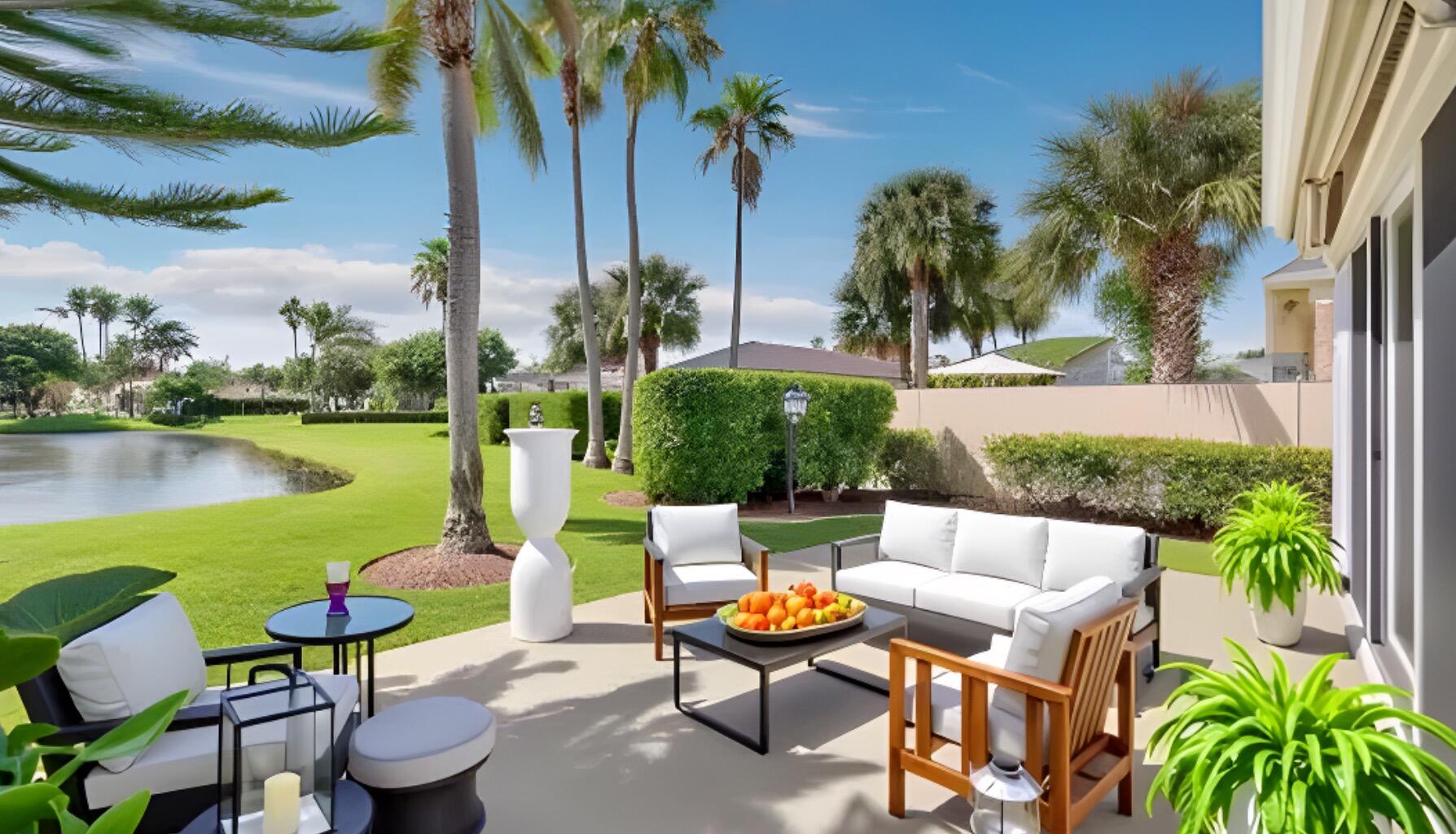 Live in a lakefront LARGE, MODERN 3 bed 2 bath HOME with a large patio/full lake views and garage in this EAST DELRAY gated community. Why not live here instead of a small overpriced apartment when you can have a whole home!!! This is an extremely well maintained ALL AGES community. 10 min drive to E. ATLANTIC Av. night life/ shopping and a 20 min drive to the beach!This home features an open floor plan, granite counter tops, SS Appliances, large garage, full size laundry, . Custom shades in each room. Beautiful lakefront patio & SUNBRELLA canopy. There are Dual sinks in the NEW Master Bath, with a walk-in shower and full tub in the 2nd bath. Added bonus of Water Softener and Generator. Lush landscaping in front and back of home. Enjoy coffee or evening drinks on your patio.
