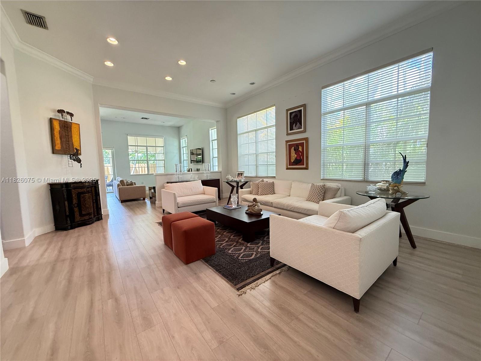 NO ASSOCIATION APPROVAL REQUIRED. One-story corner home located in the highly sought-after gated community of Doral Isles. This freshly painted residence offers 4 spacious bedrooms, 3 full bathrooms, and a beautifully remodeled kitchen featuring modern cabinetry and stainless steel appliances. Elegant laminate floors throughout, a generous master suite with a fully renovated spa like shower, and plenty of natural light. Enjoy expansive backyard partially covered patio perfect for entertaining, and a lush green area ideal for kids. 2-car garage plus 2 additional parking spaces in the driveway. Enjoy the resort-style amenities of Doral Isles including 24/7 security, clubhouse, gym, pools, tennis courts, and more. Close to A+ schools, shopping, dining, and major highways.