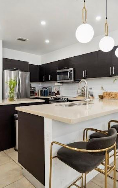 Beautiful and remodeled 2 story home 5 Bedrooms / 4 Bathrooms in prestigious gated community Vintage Place in Doral. 1 Bed /1 full Bath on 1st floor and 4 Beds /3 full Baths on 2nd floor. Alkaline water system through entire house. Excellent distribution with modern open concept kitchen, quartz countertops, ceramic floor all throughout 1st floor and wood floor on 2nd floor, stainless steel appliances, wine cooler, impact windows, blinds, beautiful & large backyard w/ a florida room. 1 car garage and driveway for 3 cars. Rental payment includes cable, alarm, high-speed internet/fiber optics and Clubhouse with amenities: pool, gym, sauna, game room, playground, and BBQ area overlooking the lake. Excellent and quiet community. Near shopping centers, highways and excellent schools.