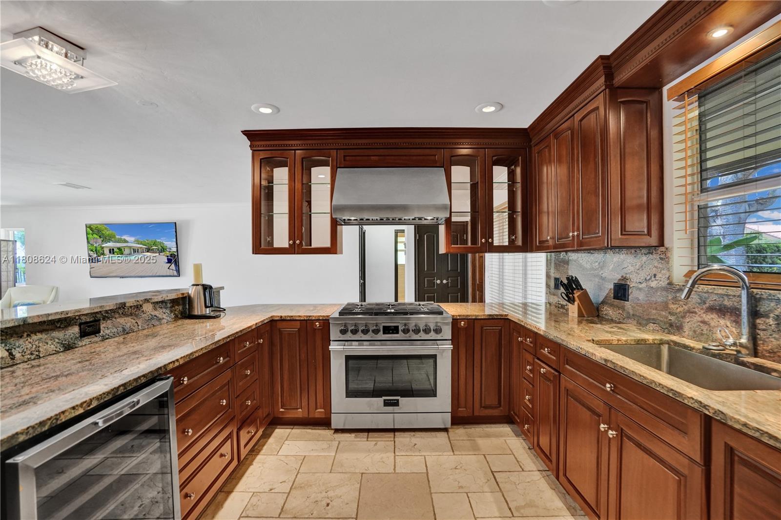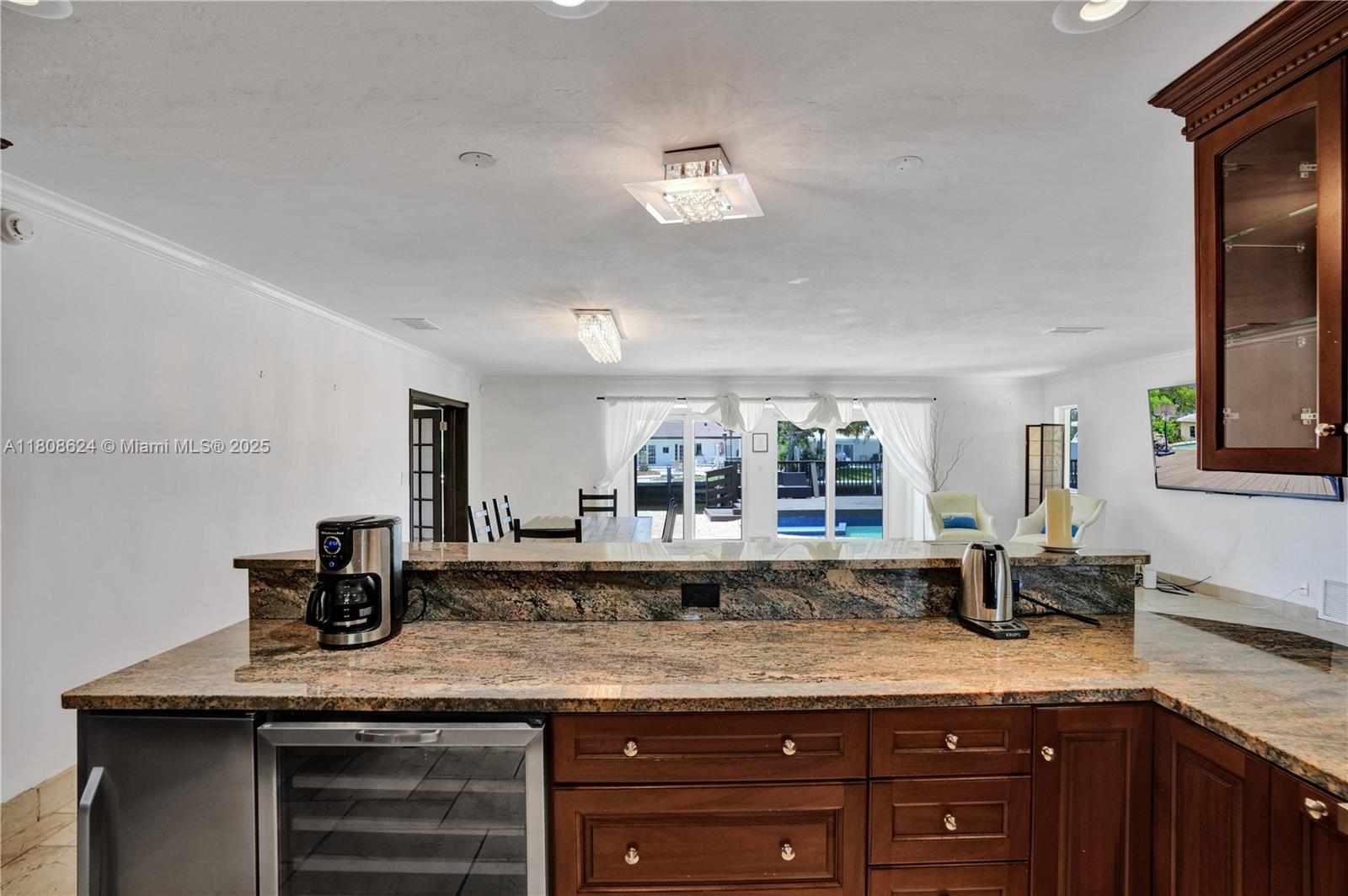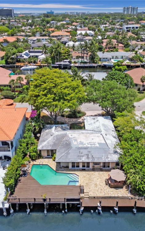 WATERFRONT GEM - Right in Time for the Holidays! Dock your yacht in your backyard with 80+ ft of deep-water frontage, no fixed bridges, and direct ocean access. Skip traffic and cruise to nearby waterfront restaurants in minutes. Inside, enjoy a bright open floor plan with hurricane-impact windows, a gourmet kitchen with pro gas stove, updated baths, and travertine floors with tile in bedrooms. The primary suite offers a walk-in closet and peaceful water views. Step outside to your private retreat, a large pool (2–6 ft depth), spa, wood deck, tiki hut, and grill area. Nestled on a quiet street, yet just a short walk to the beach, dining, and entertainment. Only 5 minutes from top rated schools, including the prestigious Pine Crest School. Live the ultimate South Florida lifestyle ACT FAST!