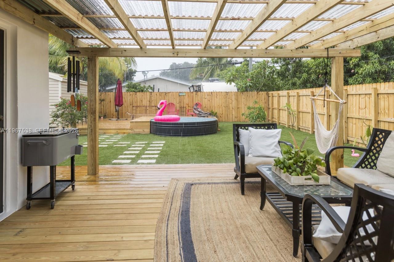 Beautifully renovated 2-bedroom, 3-bathroom furnished home in Fort Lauderdale. This move-in ready property offers a comfortable layout, spacious living areas, and plenty of natural light. The outdoor space is designed for enjoyment and entertaining, featuring full amenities including a BBQ area, bar/shed, turf yard, above-ground pool, and a dedicated dog area. The property also includes a large driveway with ample parking. Conveniently located near major roads, shopping, dining, and just a short drive to beaches and downtown Fort Lauderdale. Utilities included.