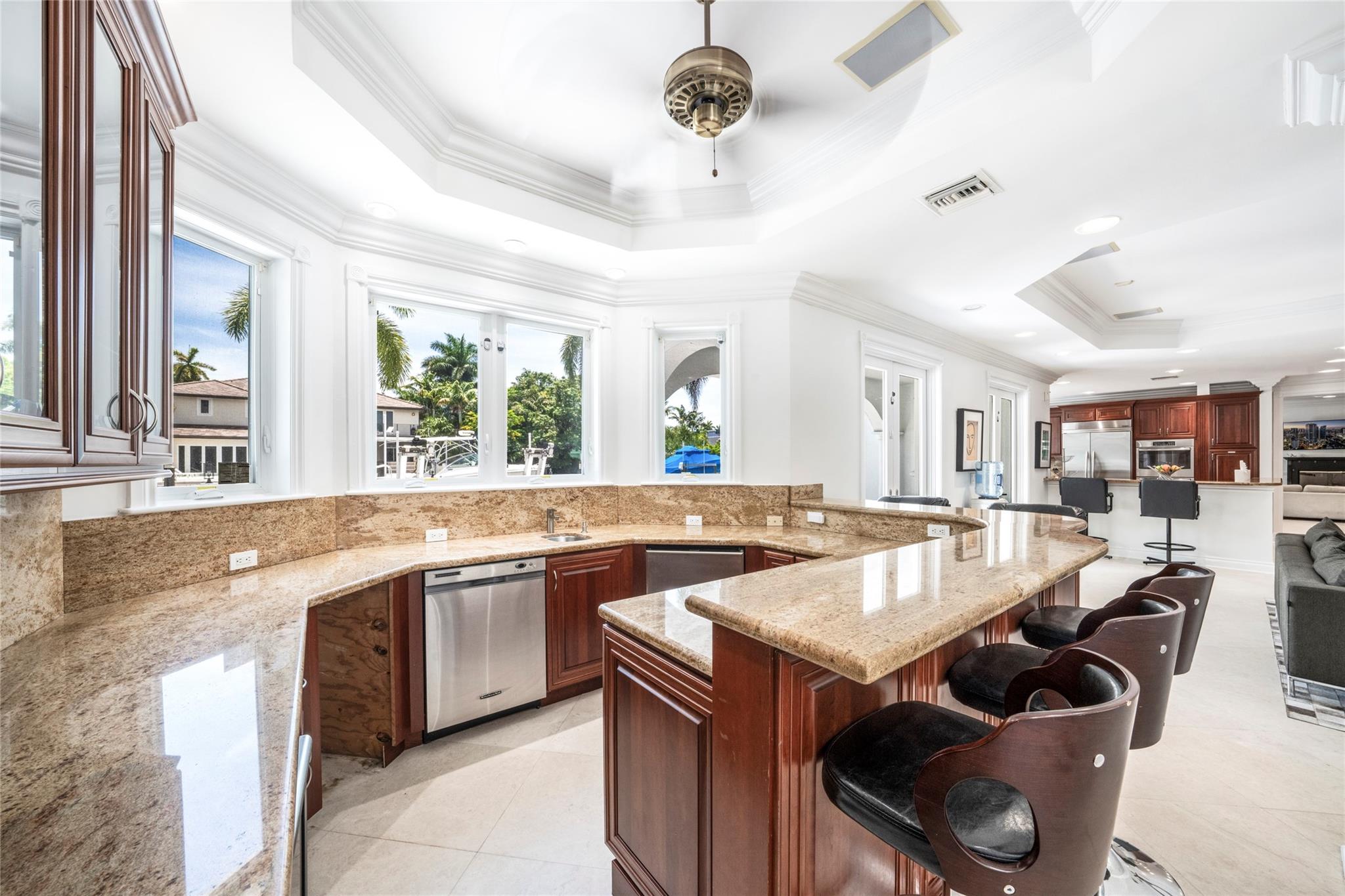 Luxurious waterfront home in prestigious Las Olas. Ocean access, deep water for up to an 80’ Mega-yacht. Large 2-story home with water views from everywhere. 6,500 sf of living area, 7 bedrooms, huge master, comfortable en-suite bedrooms, separate captain/maid suite. High ceilings, family room, living room & bar, Spacious fully equipped kitchen. Beautiful balconies, great outdoor area with large pool, covered patio, bar with grill, great for entertainment. Walk to great restaurants, galleries, shopping, beach and nightlife.