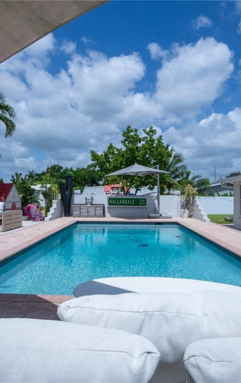 Come and fall in love with this gorgeous 4 bedroom, 3 full bathroom home in Hallandale Beach. Fantastic saltwater pool located in a huge and beautiful backyard with fruit trees and barbacue area. Surround system, security system, custom closets. Tastefully furnished with high-end designer furniture. Pet-friendly. Applicans must complete a rental application, showing credit and background check. Available April 1st. Quick approval. Minutes to the beach, Aventura Mall, Gulfstream Park, MIA and Fort Lauderdale airports.