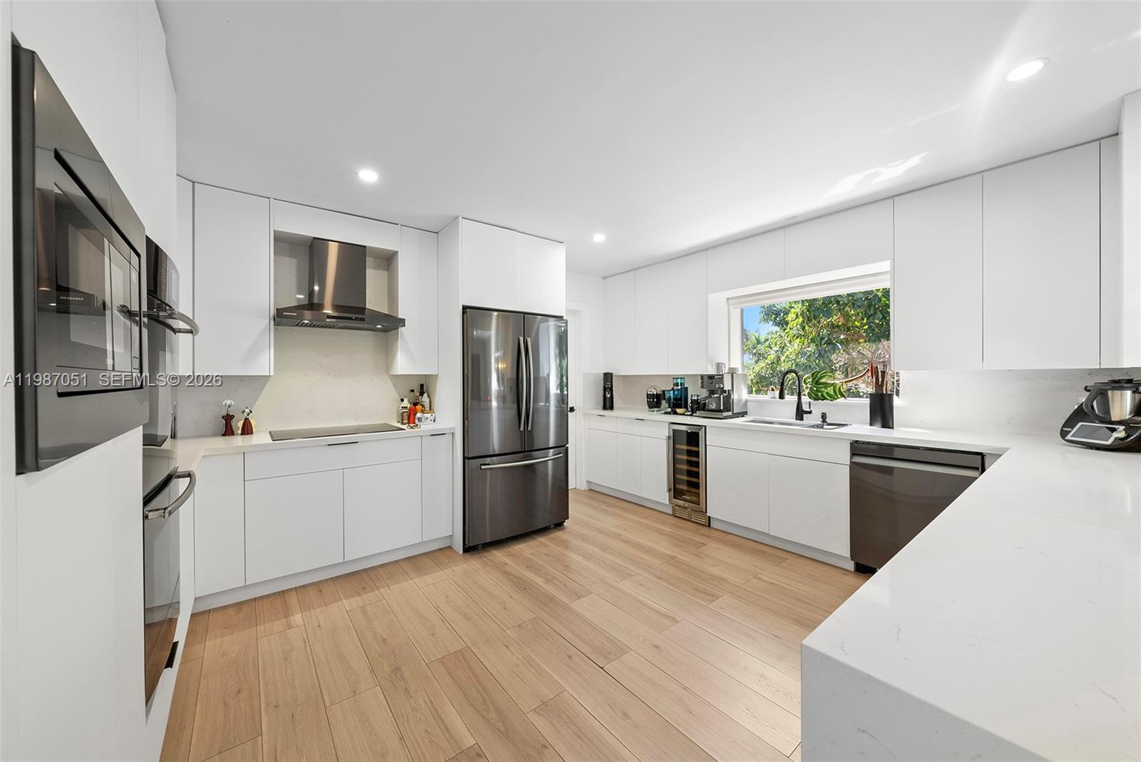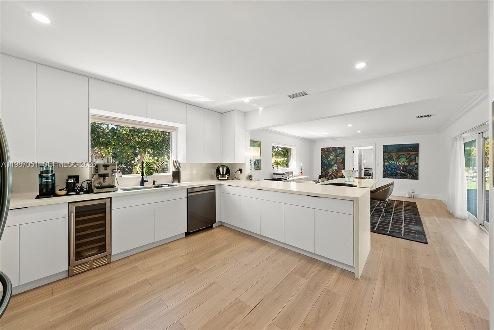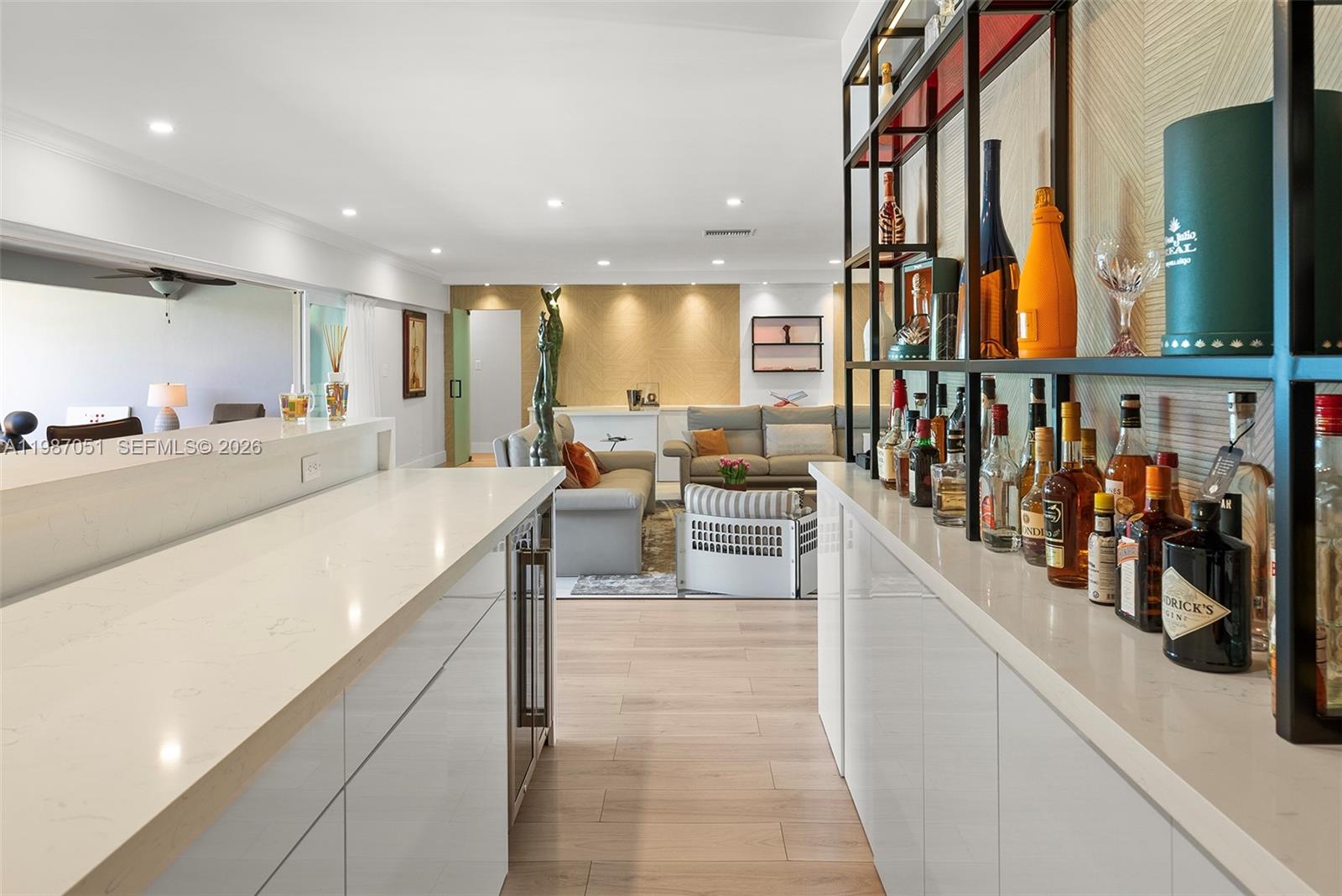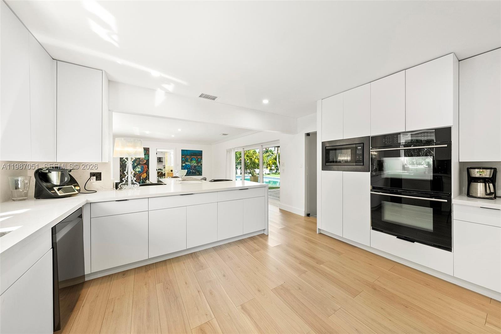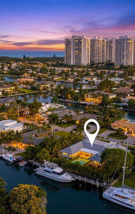 One-story waterfront home in gated waterfront community of Golden Isles. This property offers “150 FEET” of water frontage / Dockage on a wide canal with ocean access, no fixed bridges and deep water. Dock equipped with two pedestal power stations, one on each side (east and west), each offering dual 50-amp service for a total of 100 amps per side as well as jet ski davit. Perfectly suited for large vessels and multiple watercraft. Expansive circular paved large driveway, as well as a 6+ car garage setup, ideal for car enthusiasts. Spacious layout, open kitchen, large living room, formal dining room, and bar with wine cooler. A private bedroom suite with full bath is located near the entrance, along with a laundry room and full cabana bath off the pool area. The opposite wing features a gym and office area off the garage, additional bedroom, and full bath. The primary suite includes dual vanities and a generous master bath. In total, the home offers 3 BR/4BA. Outdoor living includes a covered terrace, large backyard, and oversized side yard. Rare combination of 150 of wide waterfront, deep water, no fixed bridges, and extensive garage capacity makes this property ideal for both boating and car enthusiasts.