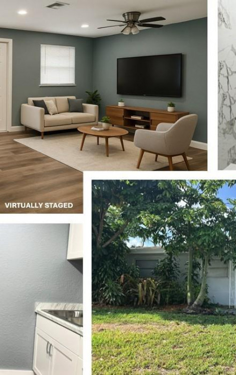 2025 full remodel & move-in ready, unfurnished! Huge corner lot, 3BR/3BA home in central Hollywood w/brand new bathrooms w/marble counters, porcelain tile, stone shower floors & LED lighting. New kitchen appliances. Freshly painted gray w/new laminate floors. 3rd BR w/private entrance for guests or home office. Comfort meets peace of mind w/professionally cleaned A/C coils & blower, new ductwork w/mold & allergen-free warranty. Enjoy outdoors: new sprinklers, backyard storage facility & big, fenced yard for entertaining. Covered carport & space for more cars. Full laundry room in carport. No cast iron pipes! Prime location, minutes to Hard Rock, near all. No HOA approval required. Small pets ok