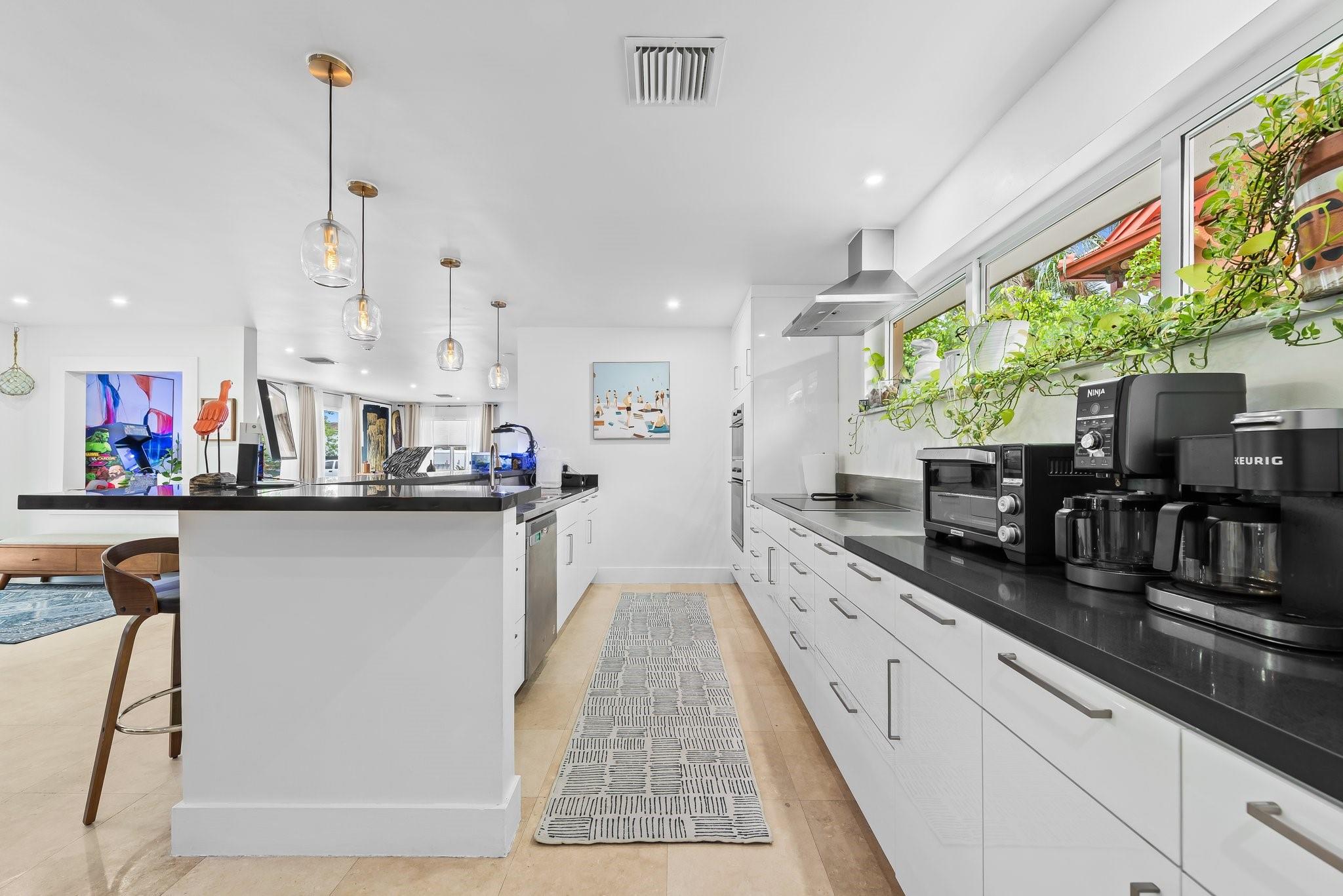 Welcome to your home by the sea! Just a short stroll to the beach and a boat marina practically in your backyard. Step inside to this beautiful remodeled 4 bedroom home with an open concept layout. At the heart of the home, the expansive kitchen with modern finishes and ample counter space. You will also find a versatile office/den space, perfect for working from home or creating a reading nook. Enjoy the outdoor patio spaces with the breeze coming in off the intracoastal. Boat parking in the back for your boat as well. Whether you are looking to enjoy weekend boating, daily walks beach walks or simply unwind in a serene setting, this home offers it all.