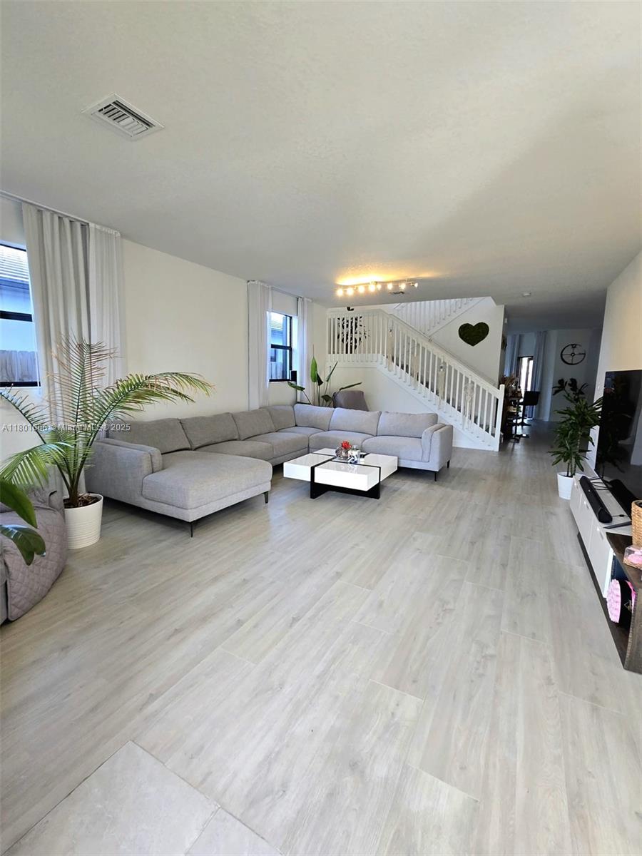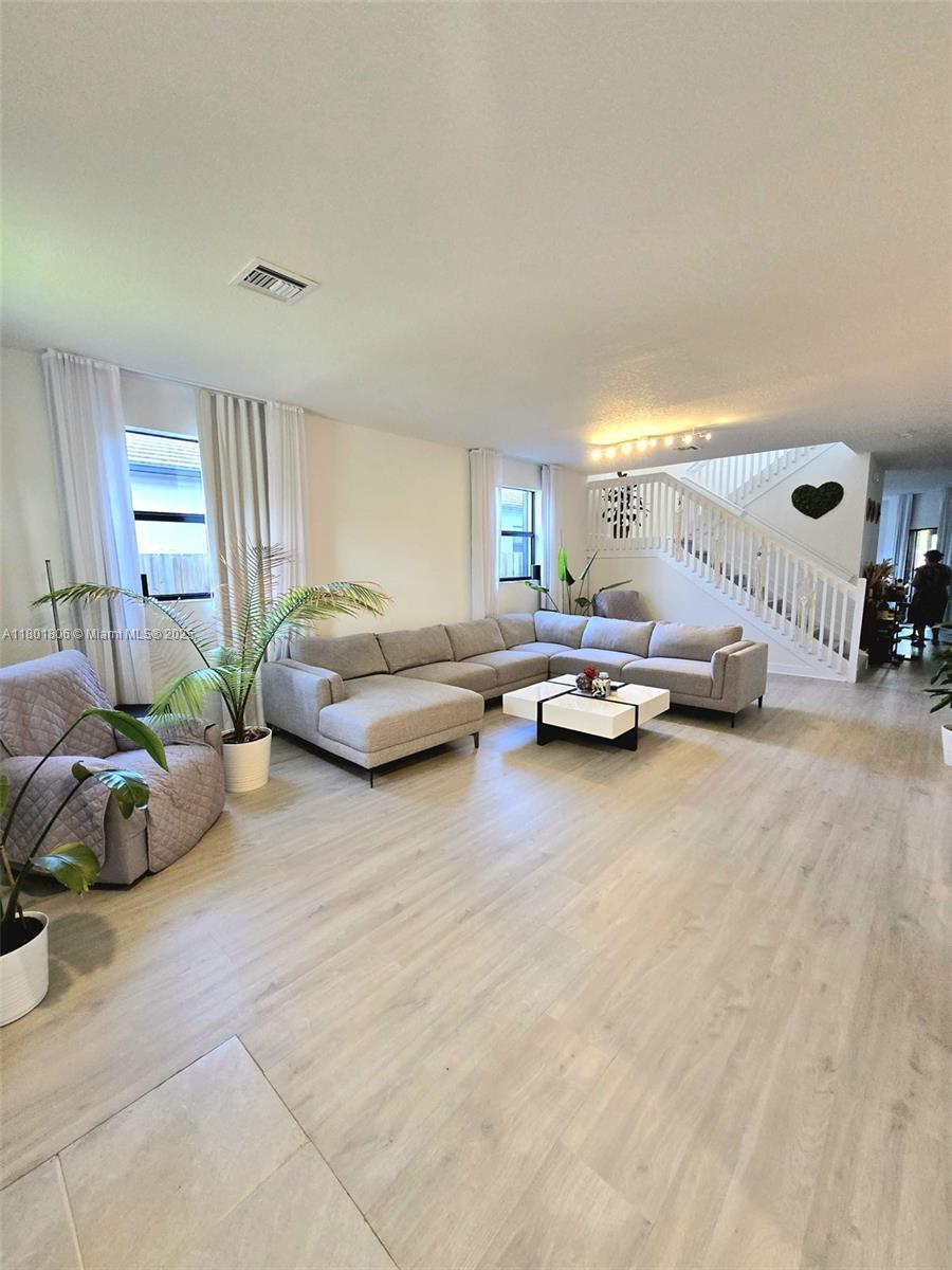 Welcome to this partially furnished 5-bedroom, 3-bath home in a gated community.The entire house features upgraded laminate flooring and blackout curtains throughout, and one room is fully equipped as a Tonal fitness studio. The open-concept layout flows directly to a fully outfitted backyard oasis with custom pergola, hot tub, outdoor furniture, and built-in grill—ideal for year-round entertaining. Eco-friendly upgrades include rooftop solar panels and an electric-vehicle charging station. The attached two-car garage offers ample storage and direct access.