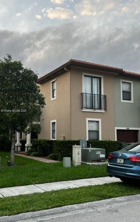Centrally located full and hard to find, 4 bedroom, 3 bathroom corner townhouse unit with 1-car garage. Fully tiled on the first floor and carpeted on the second. Formal dining room, family room, patio for entertaining, huge master bedroom with master bathroom that has shower and roman tub, kitchen with large pantry, washer and dryer room on second floor, loft area in the second floor for additional space, community pool all contained within a closed community. One complete bedroom and bathroom located on the first floor of the townhouse. Accessible hospitals, shopping, grocery, entertainment all located within close proximity to the community.