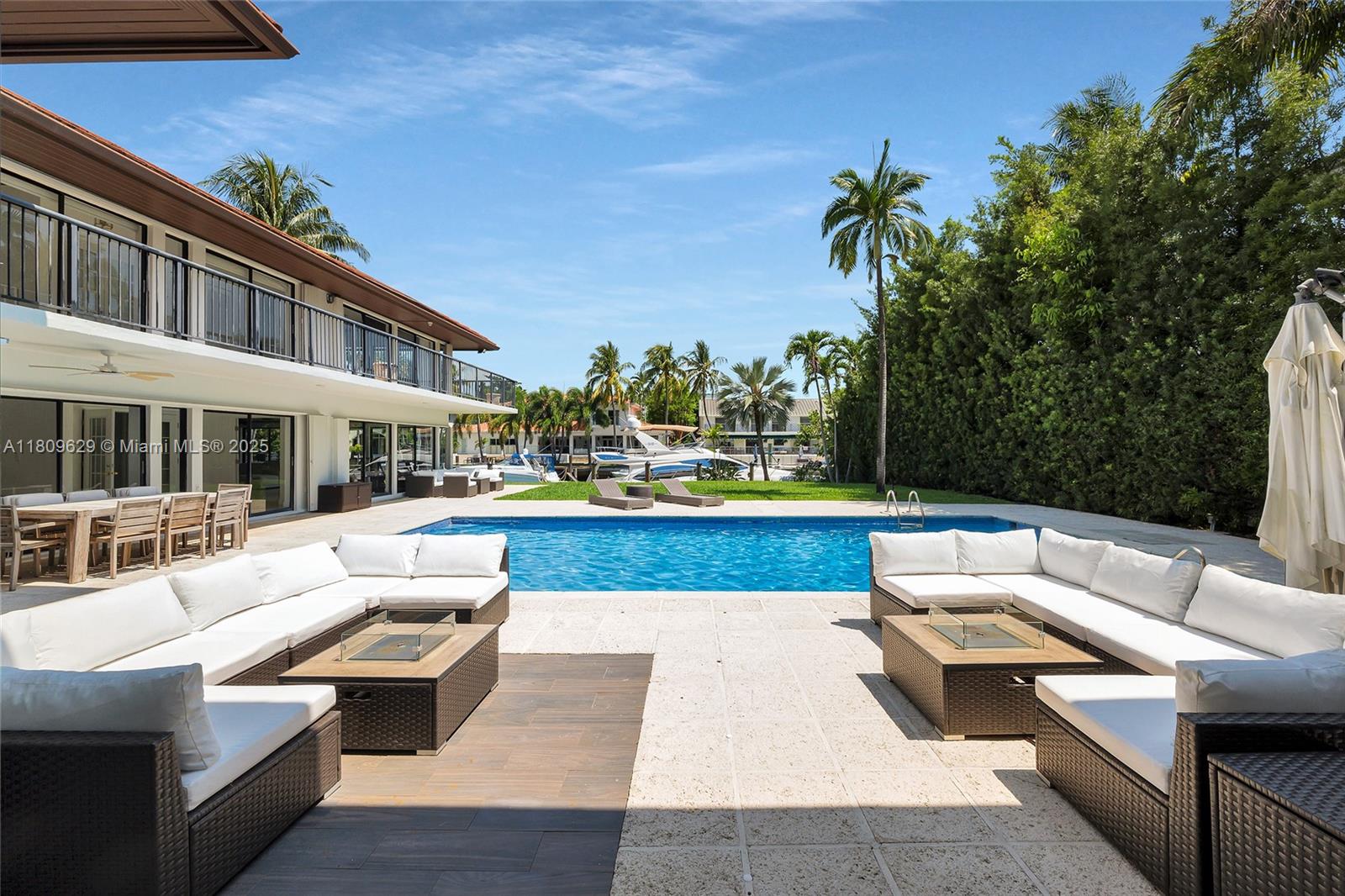 This expansive 5-bedroom, 5.5-bathroom residence offers luxurious living with 5,341 sq ft of air-conditioned space on a 16,000 sq ft lot. Enjoy water views from the large den and summer kitchen. The property features a sauna, a garage converted into a gym, and a private dock accommodating boats up to 70 feet.