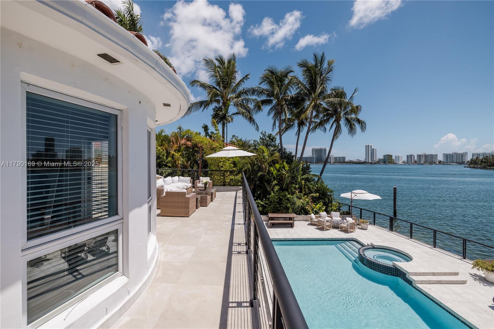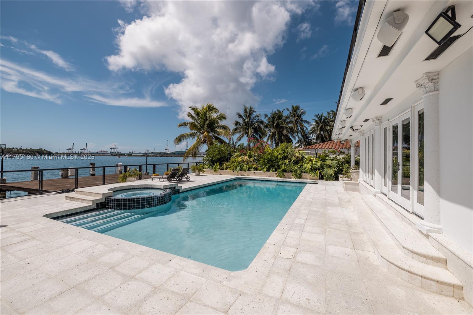 Stunning waterfront property located on the prestigious Hibiscus Island in Miami Beach. This impeccably designed home features spacious, light-filled living areas with marble floors, vaulted ceilings, and sleek finishes throughout. The open-concept kitchen flows seamlessly into the living space, perfect for entertaining. Step outside to enjoy a private pool, Jacuzzi, and expansive outdoor area with a large dock, ideal for waterfront gatherings. With breathtaking views and a prime location, this home offers the ultimate in luxury island living. The elegant master suite includes a large balcony overlooking the pool and water, and a steam room. Fully furnished. Additional features include lush landscaping, ample parking, and proximity to Miami’s finest dining, shopping, and cultural destinations.