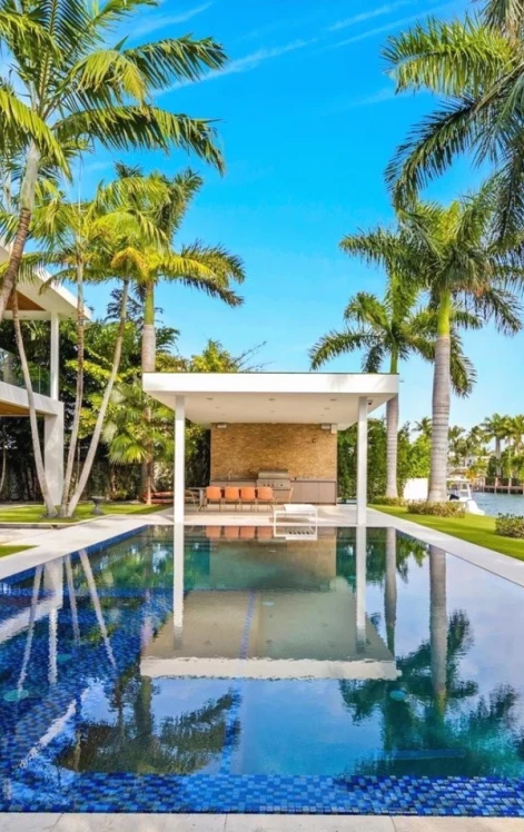 Experience elevated waterfront living in this fully furnished smart home on prestigious Meridian Avenue. Designed for seamless indoor-outdoor living, this residence features expansive open-concept interiors, soaring ceilings, and walls of glass that flood the home with natural light. The chef’s kitchen is outfitted with premium appliances, custom cabinetry, and oversized stone countertops. Enjoy resort-style amenities including a heated pool, spa, summer kitchen, cabana bath, and multiple lounge areas. The primary suite offers a private terrace, spa-like bath, and custom closets. Complete with a rooftop terrace, garage, and prime location just minutes from the beach, golf, and top dining.