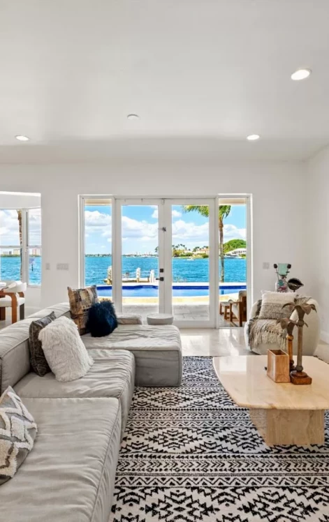 The house comes fully furnished and turnkey with 4650 sq. ft. of living space. Inside you can find 4 spacious bedrooms, 4 bathrooms and a 2-car garage. There is a master suite on both the first and second level. Two additional bedrooms are connected via a "Jack and Jill" style bathroom, plus there are several additional rooms that could be used as extra bedrooms, a home gym, an office/study or a media/theater room. The common areas are thoughtfully designed to create a sophisticated, modern aesthetic. Outdoors there is a majestic infinity pool and spa, summer kitchen, and an expansive green space with a charming waterfront gazebo.