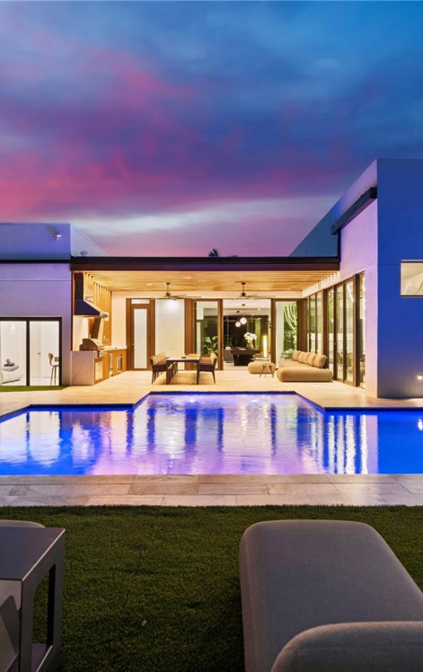 This stunning five-bedroom modern home blends luxury and functionality with a sleek,