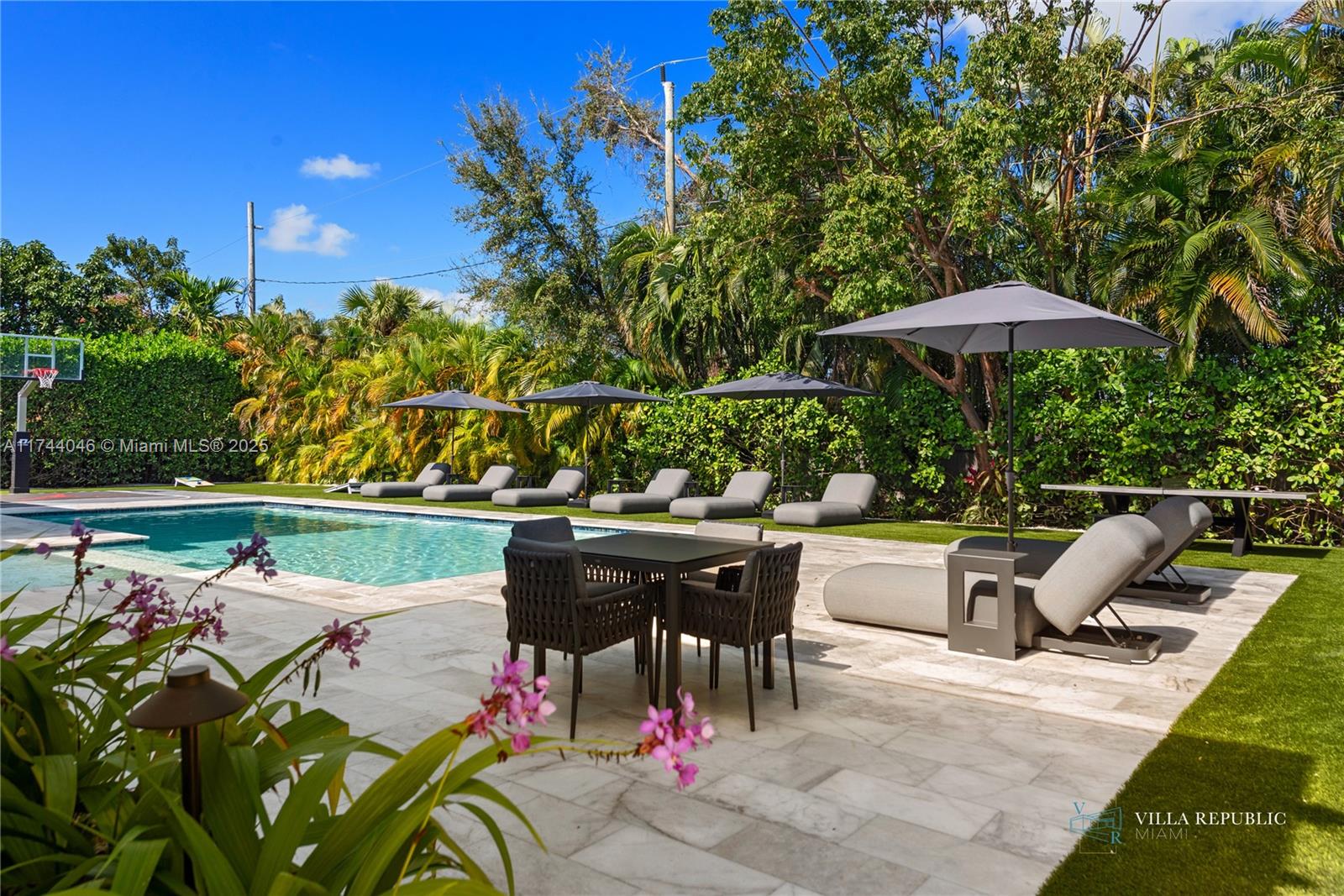 perfect for entertaining. Outside, a sparkling pool with a sun deck invites relaxation, while a half