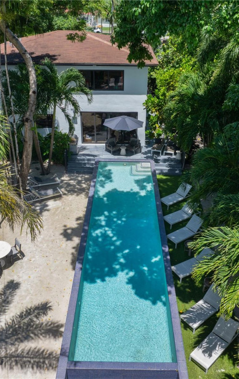 Relax in the private backyard with a heated infinity pool surrounded by beach sand and a BBQ grill. Blending Art Deco elegance with modern amenities, this Miami retreat is near Wynwood, South Beach, and top restaurants, comfortably accommodating nine guests. Your unforgettable Miami experience awaits! Rental rates may vary based on stay length and season for stays under six months