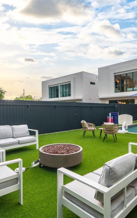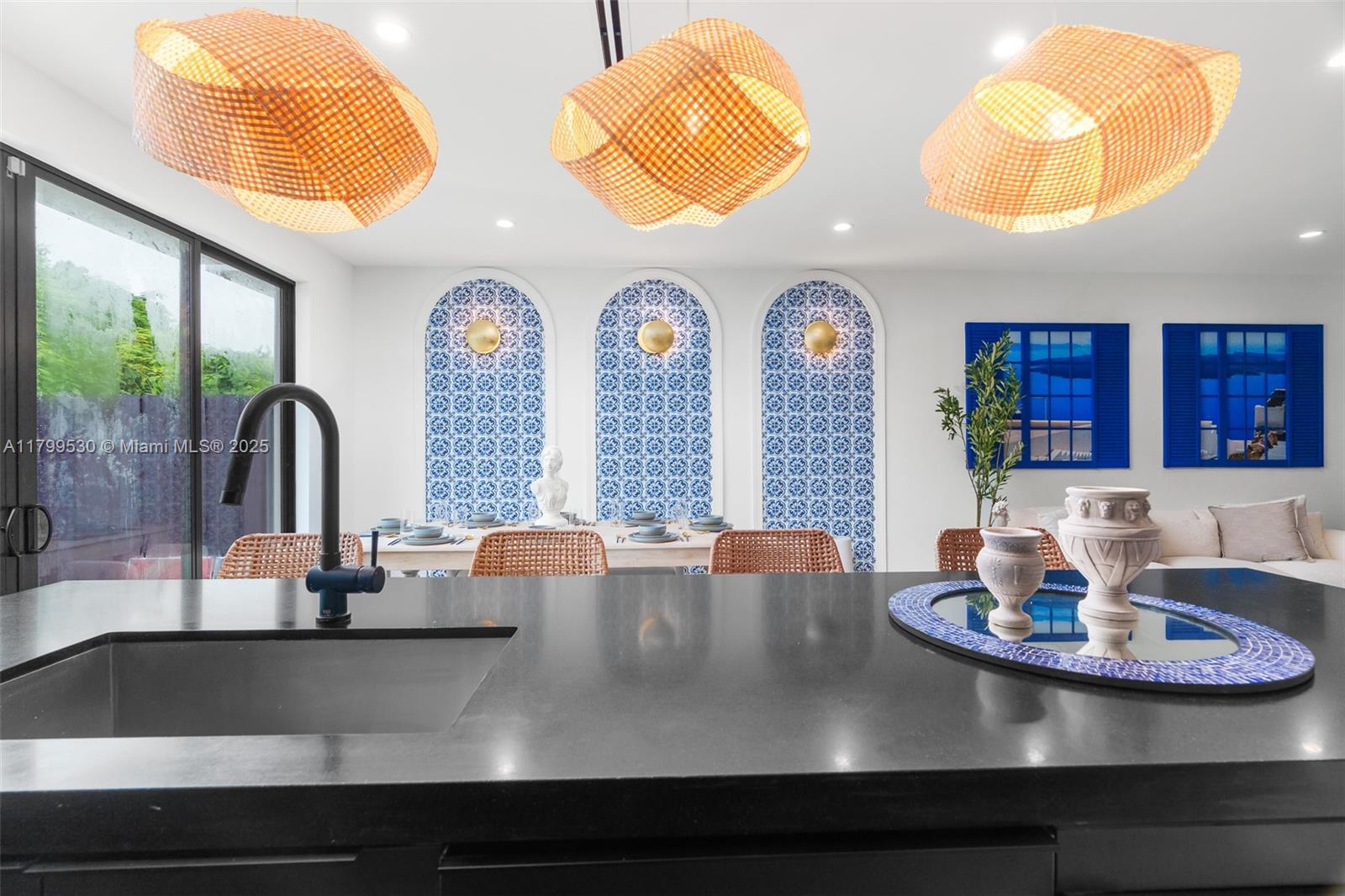 Escape to Mediterranean-inspired living in this stunning 4-bedroom, 2.5-bath Santorini-style townhome, available for rent in the heart of Miami. This light-filled residence blends clean, modern finishes with traditional coastal charm—featuring bold blue-and-white tiled arches, warm wood floors, and a sleek matte-black kitchen with rattan accents. The open floor plan flows effortlessly from the chef’s kitchen to a sunlit dining area with serene garden and pool views. Ideal for entertaining or relaxing in style, this unique home offers a peaceful retreat just minutes from top restaurants, shops, and vibrant city life.