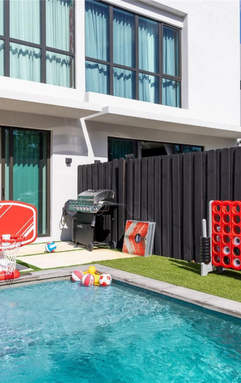 Live the tropical lifestyle in this vibrant, Cuban-inspired 3-bedroom, 2.5-bath fully furnished rental home. Thoughtfully designed with bold colors, tropical motifs, and lush greenery, this home blends comfort with character. The spacious open layout features a cozy lounge, statement decor, and a dining area that flows seamlessly outdoors. Relax in the private backyard oasis with a glowing pool, lounge chairs, string lights, and a shaded cabana perfect for entertaining. Located in the heart of Miami, just minutes from top dining, nightlife, and cultural hotspots, this home is the perfect island escape in the city