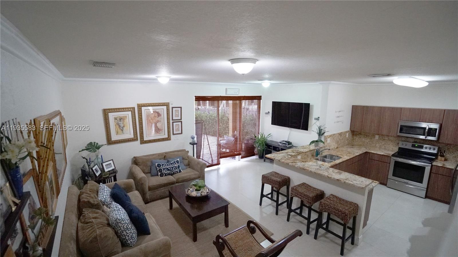 The updated kitchen features granite countertops and stainless-steel appliances, and the laundry room includes a new washer and dryer. Bathrooms have been updated throughout. Enjoy ceramic tile flooring downstairs and wood laminate flooring upstairs. The den provides added privacy by separating the primary bedroom from the other rooms.