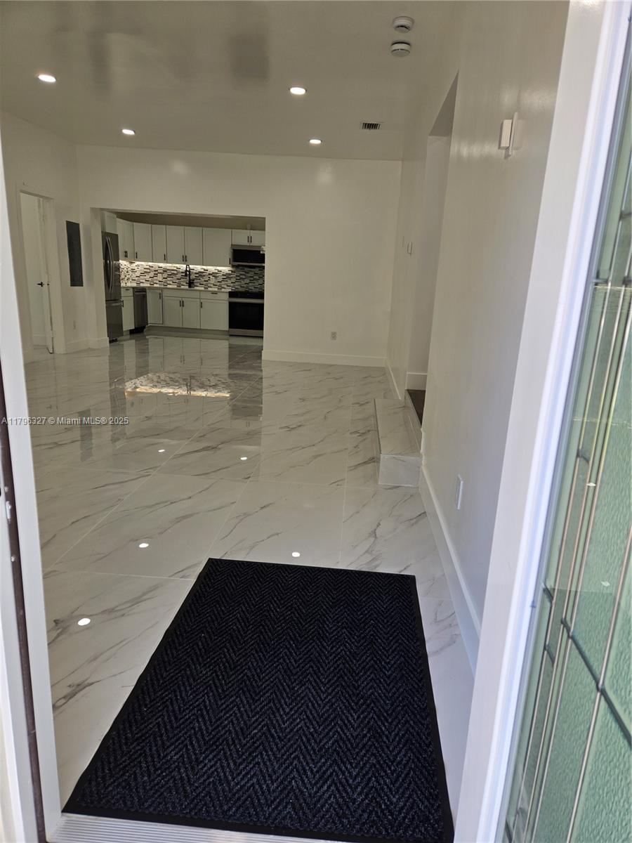 Extended family's dream property. MAIN HOUSE has 4 bedrooms and 2 full baths. Dining/Living Room area, Open Kitchen w/ Quartz Counters, Stone/Glass Backsplash, Undermount Sink & SS Appliances. Indoor Laundry Room w/ Full-size Stackable Washer/Dryer. PLUS 3 separate dwellings with: Private Entrances, kitchenette, mini-split AC units, and 2nd. Laundry Room, perfect for In-Laws, Mother-Daughter or Sub-Tenant. THROUGHOUT THE PROPERTY: Recessed LED lighting, 24" x 48" porcelain tile flooring, impact windows and doors, Two 27 kW Rheem Tankless water heaters, WiFi, ADT alarm system, 7 Security Cameras, 6 Lights (dusk-to-dawn)". SPACIOUS BACKYARD with: In-Ground Pool -Fence, Deck, and Saltwater sanitize eqipment-, Rubber-Mulch Playground Area and BBQ Kitchen Area. 6-Cars Parking space. B.H