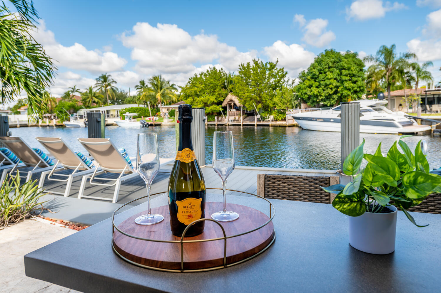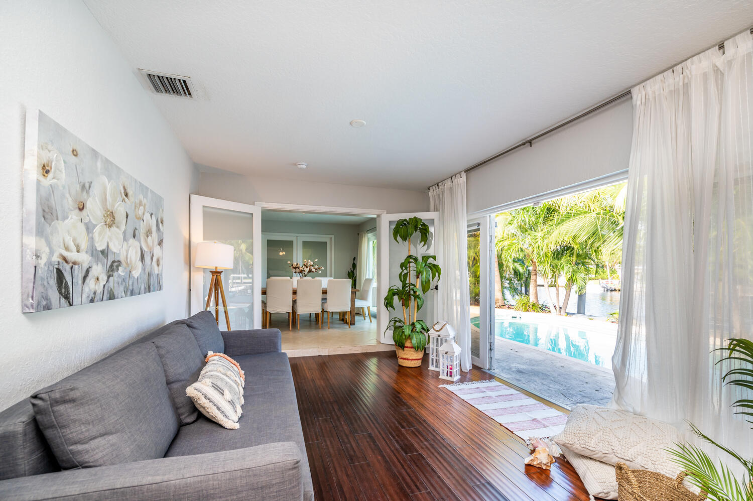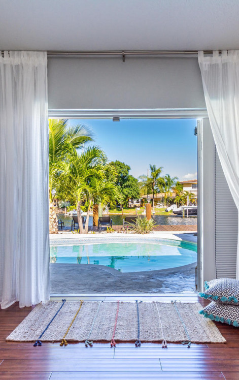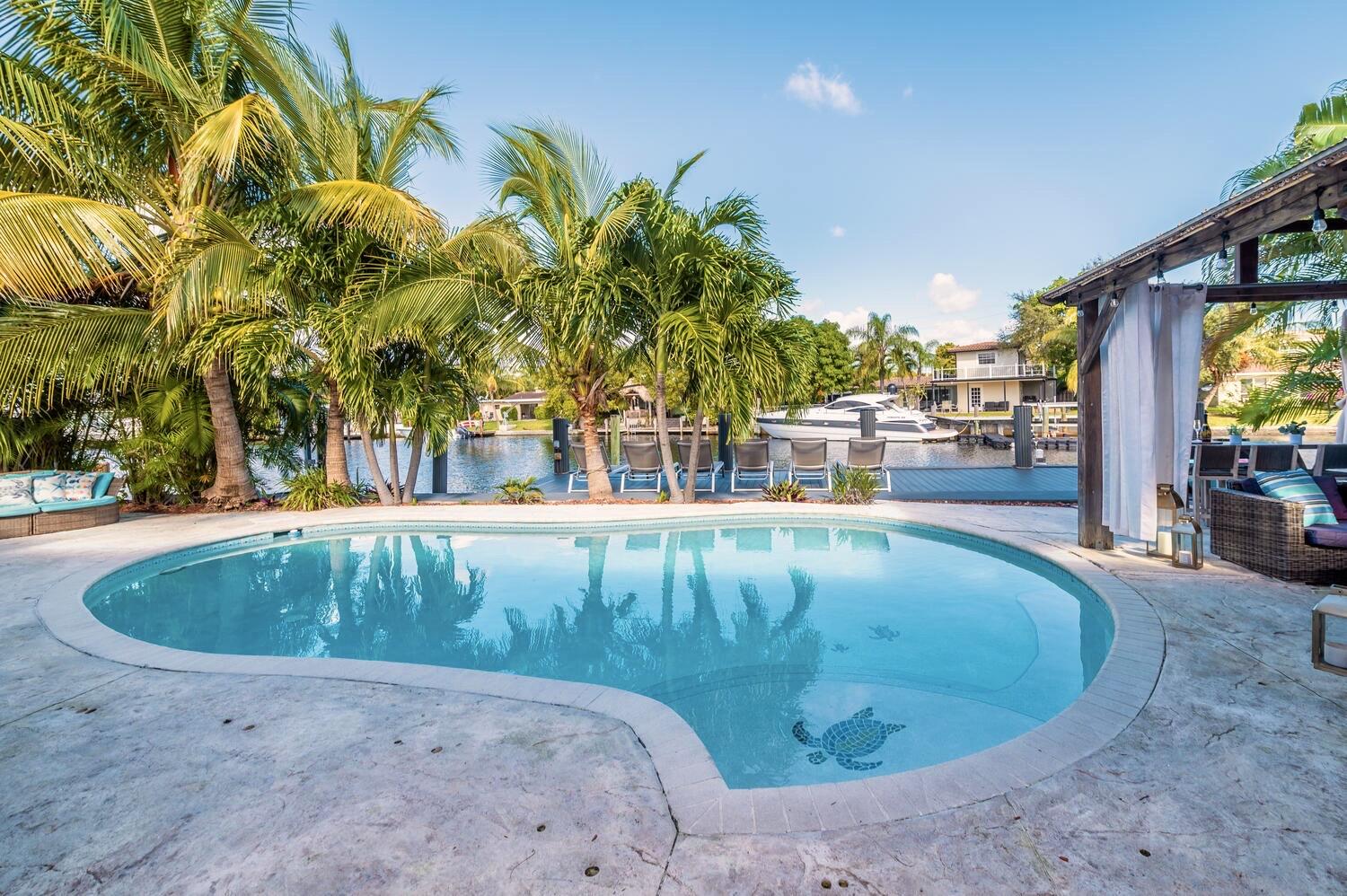 This waterfront home is the family-resort you have been looking for. Fully furnished 4 beds 3 baths, open-conceptgourmet kitchen with new appliances, bar countertop and spacious living/media room area. Relax in the private,heated pool while enjoying water views and spectacular sunsets. There's a spa in a cozy corner surrounded by lushlandscaping for privacy. The outside bar with gas grill invites for BBQ cookouts. A brand new private dock issuitable for boats up to 35 ft. Throw your lines in the water and catch your dinner. This home is off Federal Hwy (US1) and just minutes from I-95. Quick 5 min drive to beach on East Atlantic Blvd, Beach access, grocery stores, Watersport rentals, several gorgeous beach bars and waterfront restaurants nearby. SEASONAL | FURNISHED!