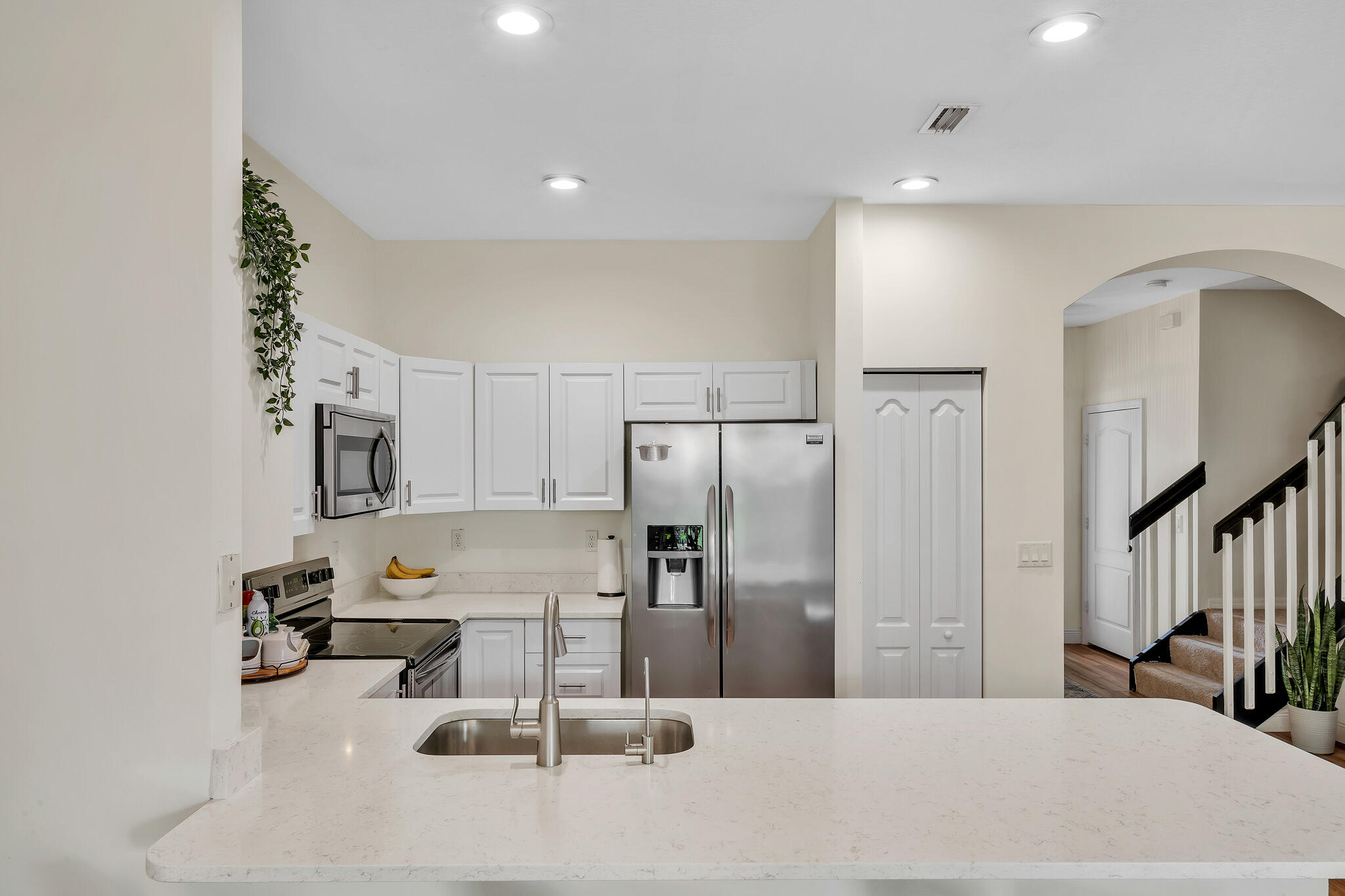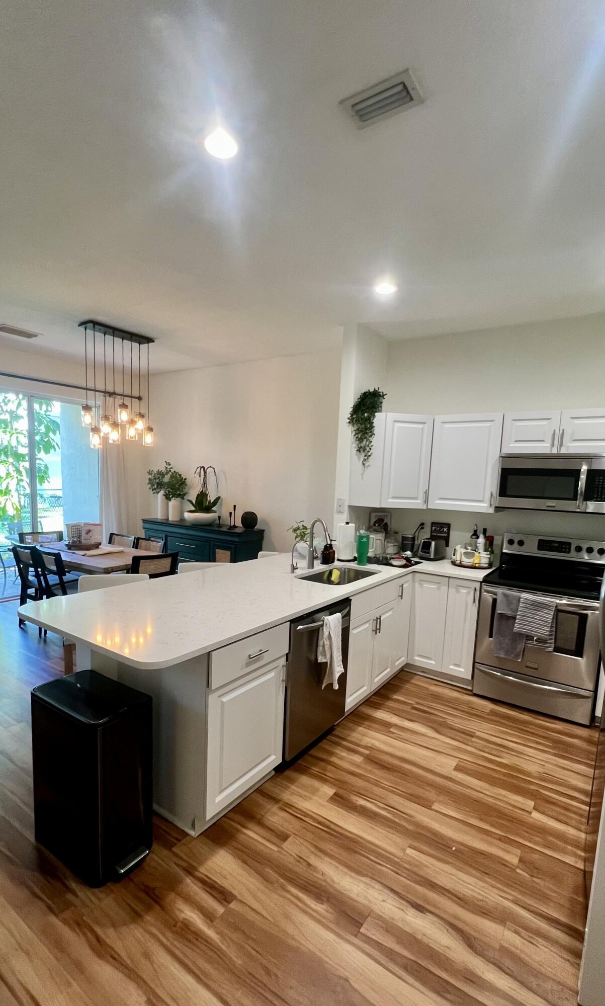 This beautifully maintained 3-bedroom, 2.5-bath townhome with a 1-car garage is located in a sought-after gated community and features numerous upgrades throughout. The open-concept main level showcases stylish laminate flooring and an updated kitchen with quartzite countertops and stainless steel appliances.May be rented partially furnished with additional deposit.The primary suite includes a newly renovated bathroom with designer finishes and a custom-built closet system. Reverse osmosis water filtration system. Enjoy tranquil garden views from both the living and dining areas.Community amenities include 3 resort-style pools with a hot tub, 2 tennis courts, a fully equipped fitness center, and a playground.