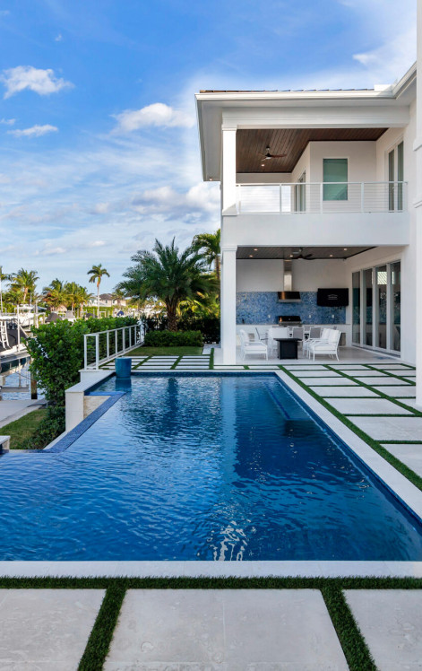 This breathtaking two-story modern residence, completed in 2023 is situated on a 100x110 lot with 100 feet of waterfrontage. The home offers stunning views of both the canal and the Intracoastal, seamlessly blending luxury, comfort, and contemporary design. With 4 bedrooms and 4.1 bathrooms, this 4,852-square-foot home boasts an expansive total area of 7,246 square feet. Designed with exceptional attention to detail, the residence is filled with natural light, thanks to floor-to-ceiling windows and soaring 23-foot ceilings. The open-concept layout provides a sense of space and grandeur, while all-impact glass and doors ensure security and peace of mind. The main level features a gourmet kitchen equipped with top-of-the-line appliances, a walk-in pantry, custom lighting, and a