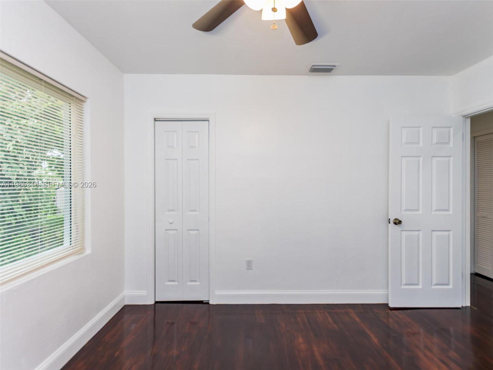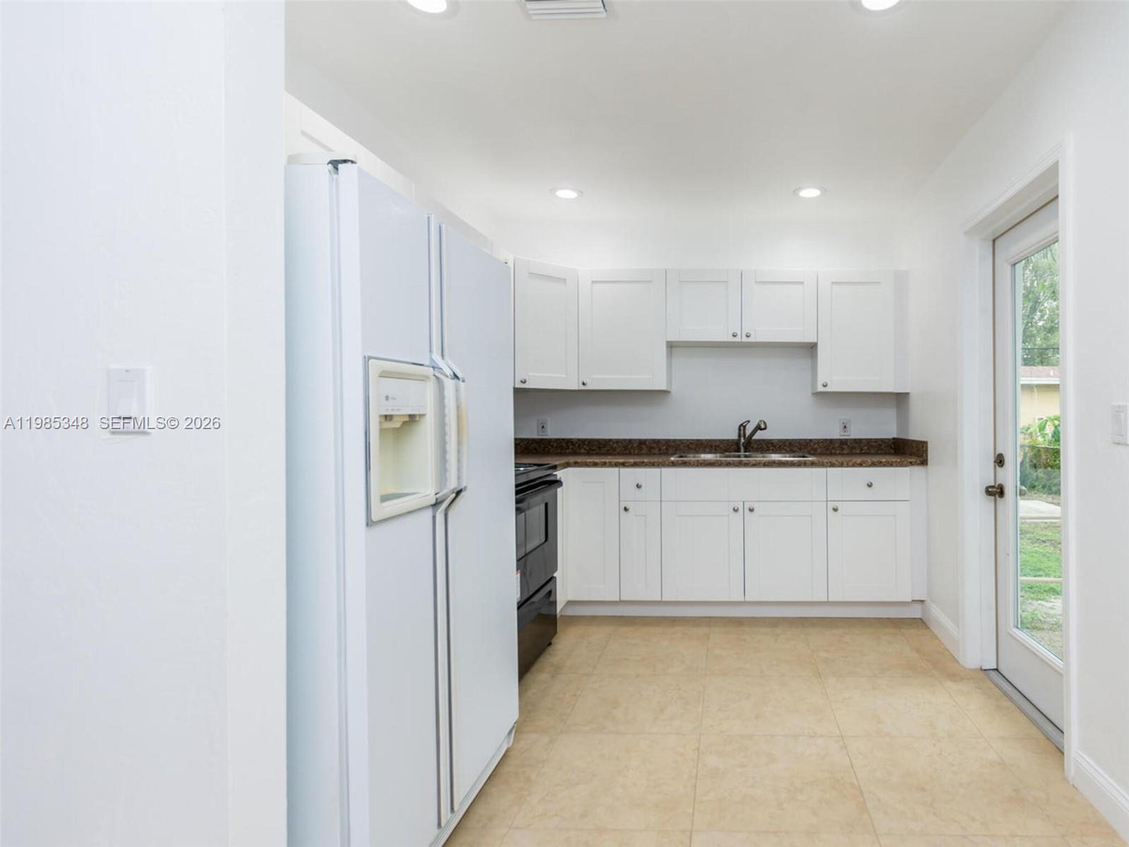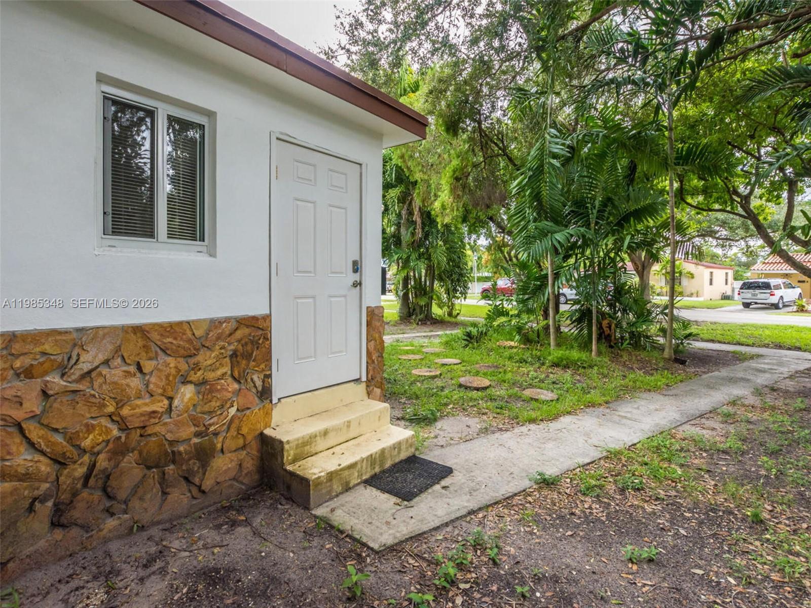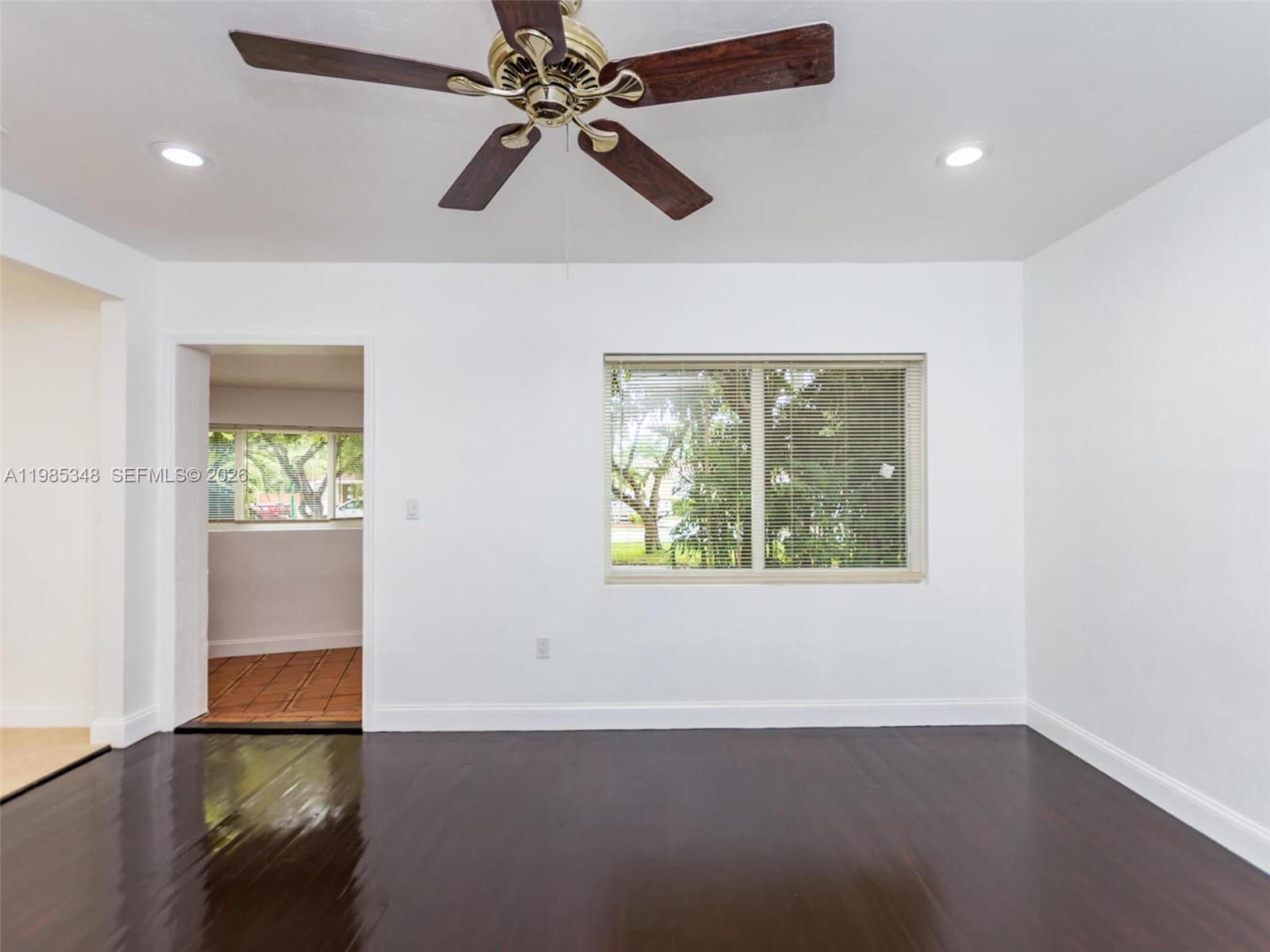Attractive house w/new impact windows and doors. Great for energy efficiency and savings as well as security. Wonderful natural lighting due to large windows. Great modern lighting throughout the house (high hats). Gorgeous hardwood floors in the living room & some bedrooms. Spacious living room with a great view. Beautiful kitchen w/attached dining room & new range & new refrigerator w/matching microwave & new floor tiles. Rooms replete w/ sizable closet spaces & new ceiling fans. Both bathrooms have been renovated. This house is mostly fenced & has a lush front garden and plenty of parking. Large backyard w/many fruit trees, as well as a characteristic brick barbecue w/concrete patio for the outdoor enjoyment of the new tenants! Great location near major highways, airport, & downtown Miami.