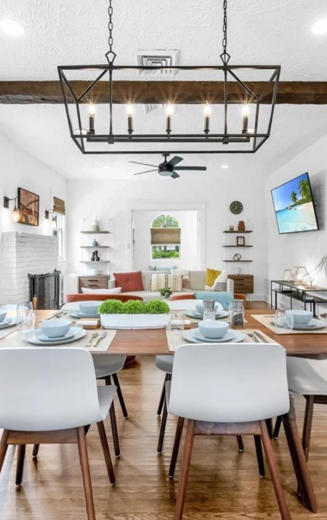 Welcome to your tropical retreat in historic Flamingo Park, where California Mission style meets Palm Beach charm. This beautifully remodeled Spanish villa blends Boho-chic elegance with modern comforts, perfect for families, sun seekers, and pet lovers. The main house features a cozy office nook, a welcoming living room with a decorative fireplace, a stylish dining area, and a chef's dream kitchen with updated appliances. Relax in the primary suite with its king-size bed and designer en-suite bathroom or the Zen-inspired twin bedroom. The private guest cottage offers a king bed, luxury bathroom, and kitchenette. Outside, unwind in the heated saltwater pool, dine al fresco, or let pets enjoy the fenced yard. Available monthly for season or off-season. Also available weekly.