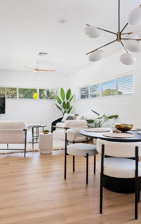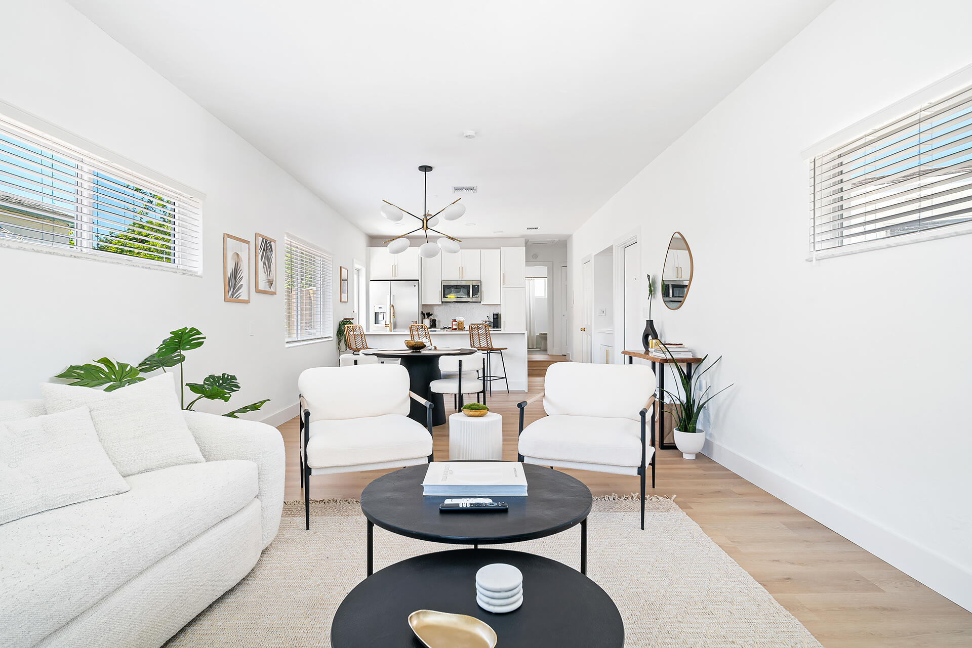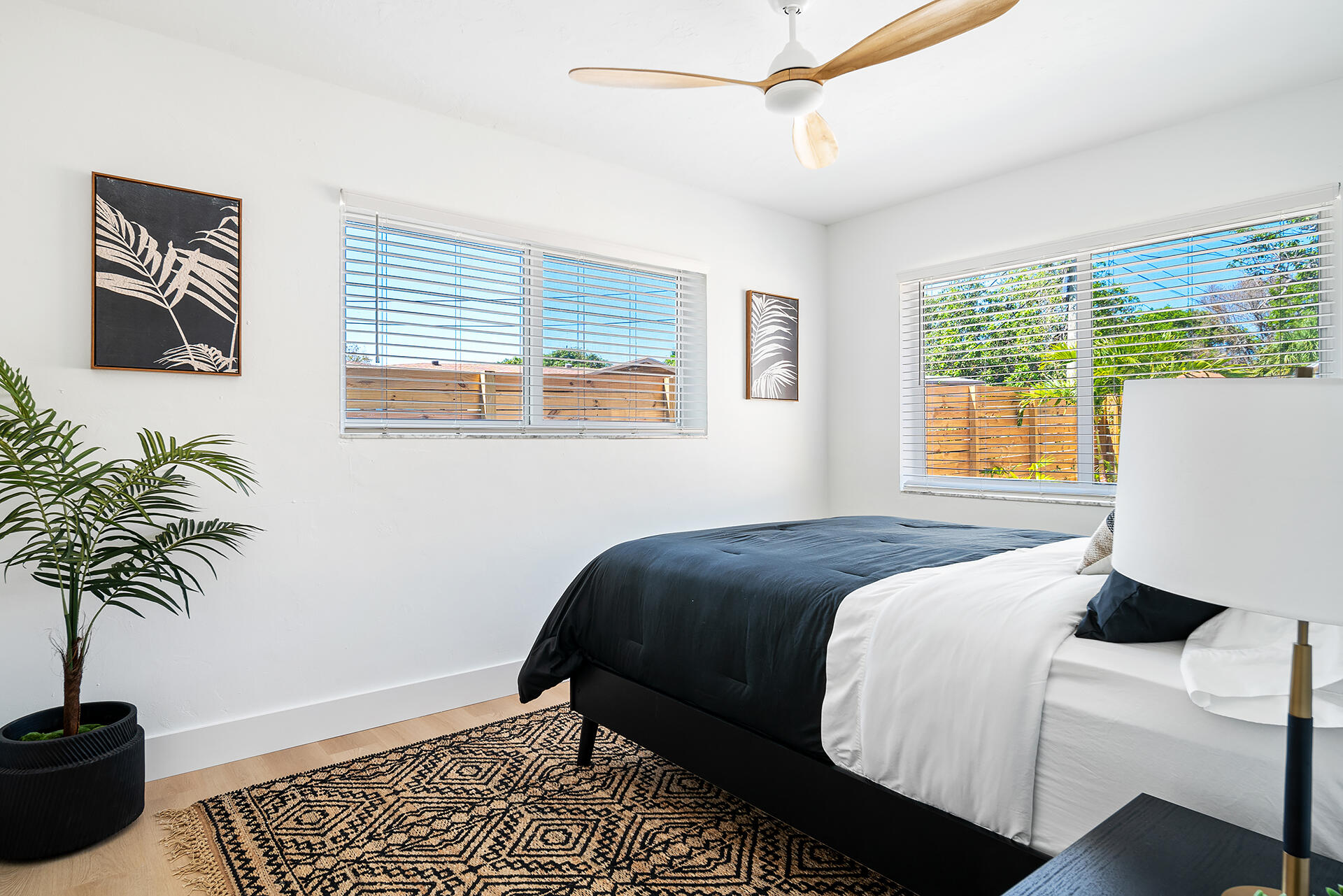Beautiful fully furnished 3 bedroom 2 bathroom home located in the quiet Historic area of Northwood Hills. This charming 1956 Palm Springs style Mid-Century home has been COMPLETELY renovated, boasting brand new stainless appliances, wet bar, quartz countertops, washer/dryer, garage and fenced in yard. Situated on the highest point in West Palm, this Northwood Hills home is located just minutes from downtown West Palm and Singer Island