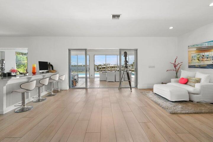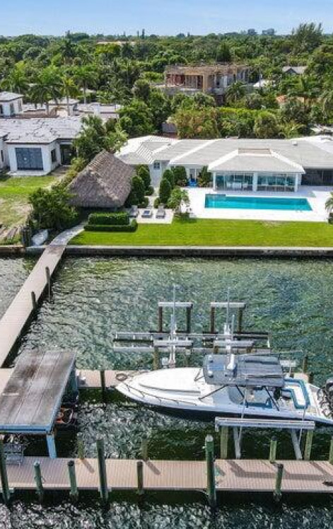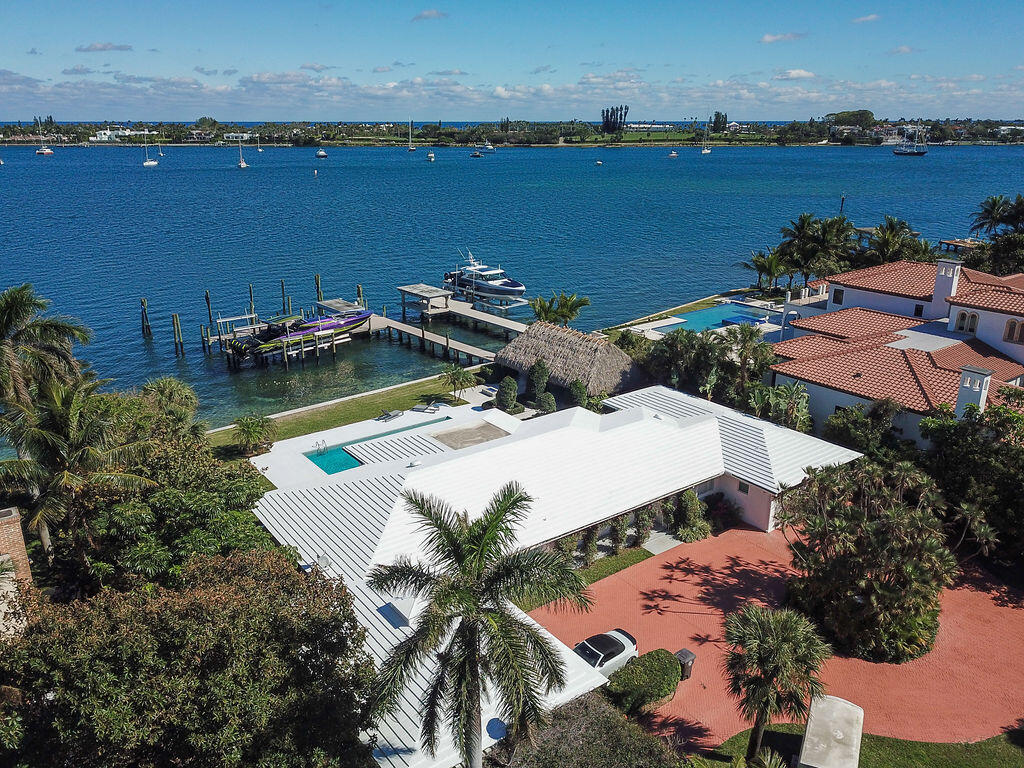 Available May 1, 2026. Direct Intracoastal Dream. Private dock: 3 slips w/ lifts. 150 ft of water frontage. Available now furnished; turnkey. Located on a sprawling 36,000+ sq ft lot, this North Flagler Drive home is a boater's paradise. This one of a kind 5-bed, 5-bath home features a brand new kitchen, massive primary walk in closet, sauna, movie room, large 50 ft pool overlooking intracoastal, hot tub, fire pit, summer kitchen, outdoor shower & 2 car garage. Be the best host in town with your own oversized backyard Tiki Hut, equipped w/ commercial grade wrap around bar, 3 television's. Enjoy surround sound throughout the interior/exterior with your user friendly Sonos speakers.
