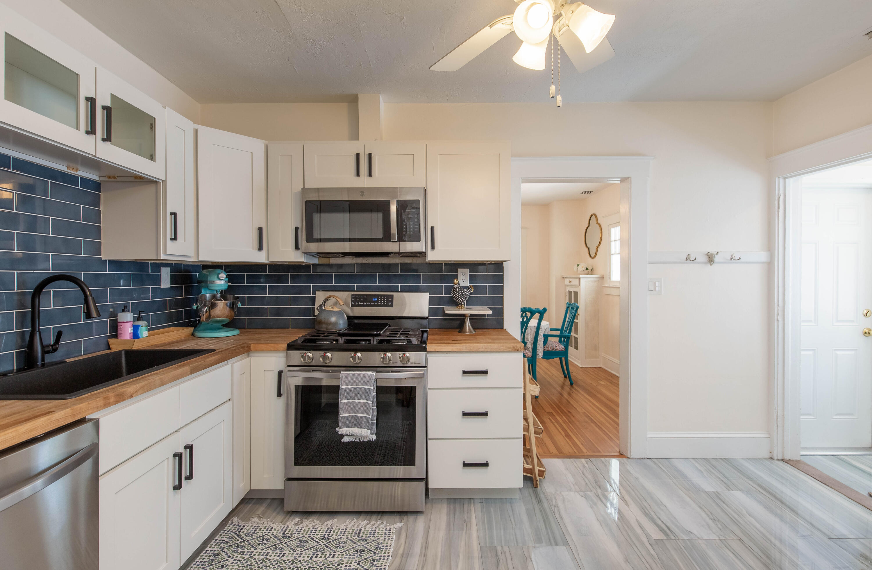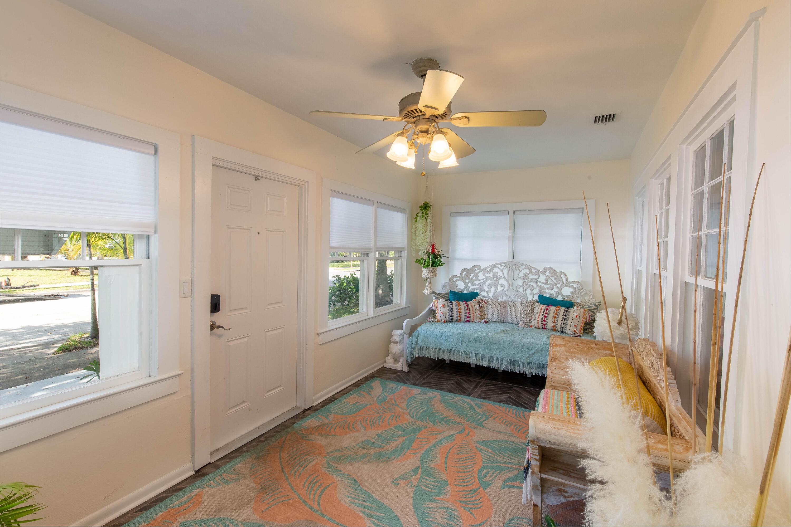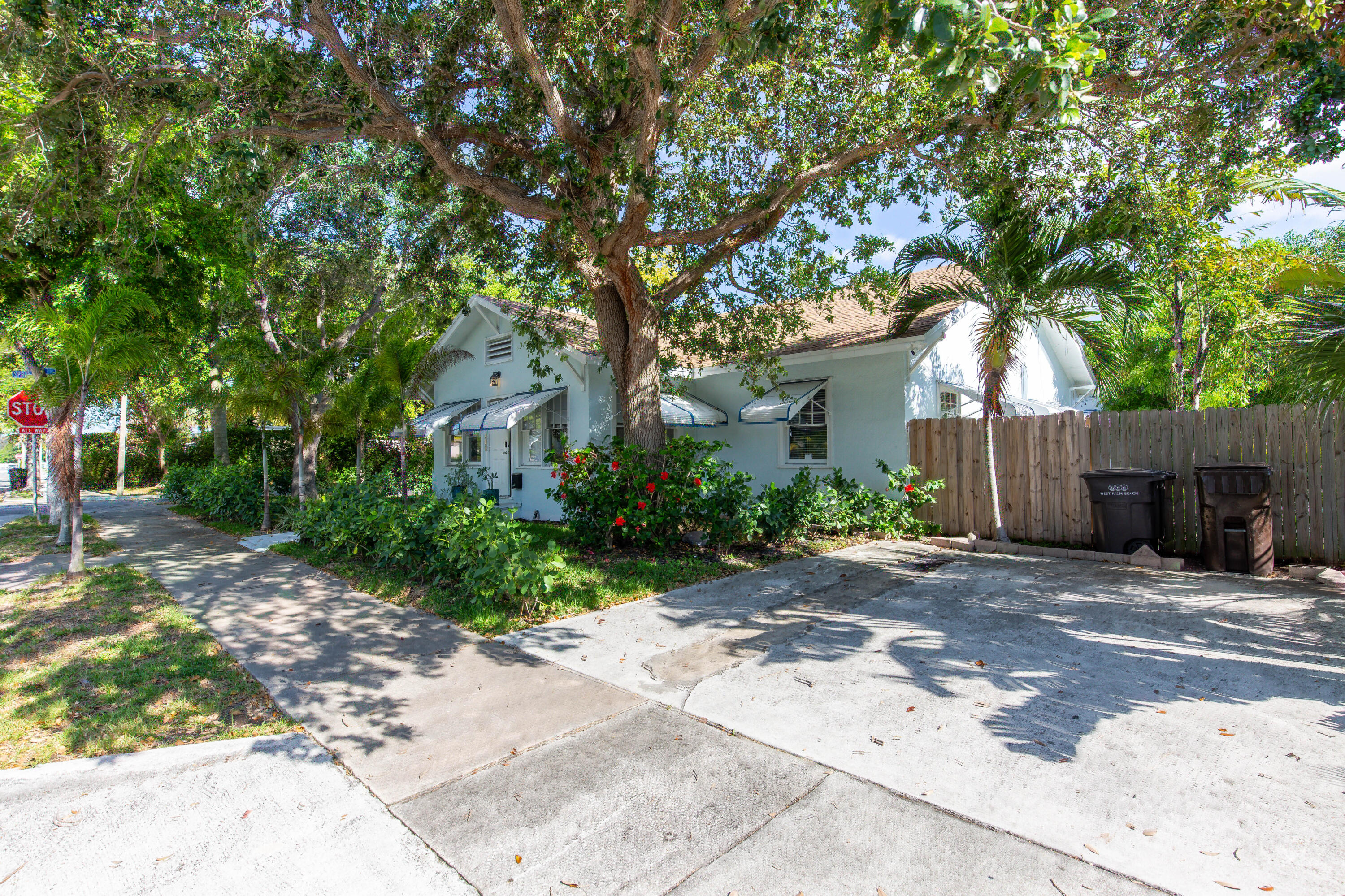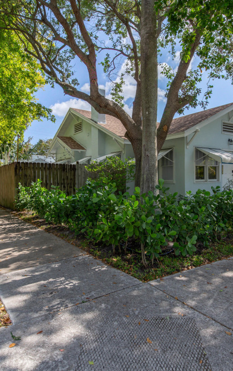 This absolutely charming, totally renovated single family home is ideally situated in North Palm, just walking distance from the water! The chic interior features 2 bedrooms, 1 full and 1 half bathrooms, a Florida room, and a open patio perfect for outdoor dining. This property is offered fully furnished! The home has the beautiful original wood floors throughout the living spaces and gorgeous modern tile in the kitchen and Florida room. The kitchen offers butcher block counters, white shaker cabinets with a stunning blue tile backsplash, and updated stainless appliances with a gas range. The outdoor patio features designer oversized grass inlaid pavers and beautiful tropical landscaping. Utilities are included up to $350/month, no pets allowed.